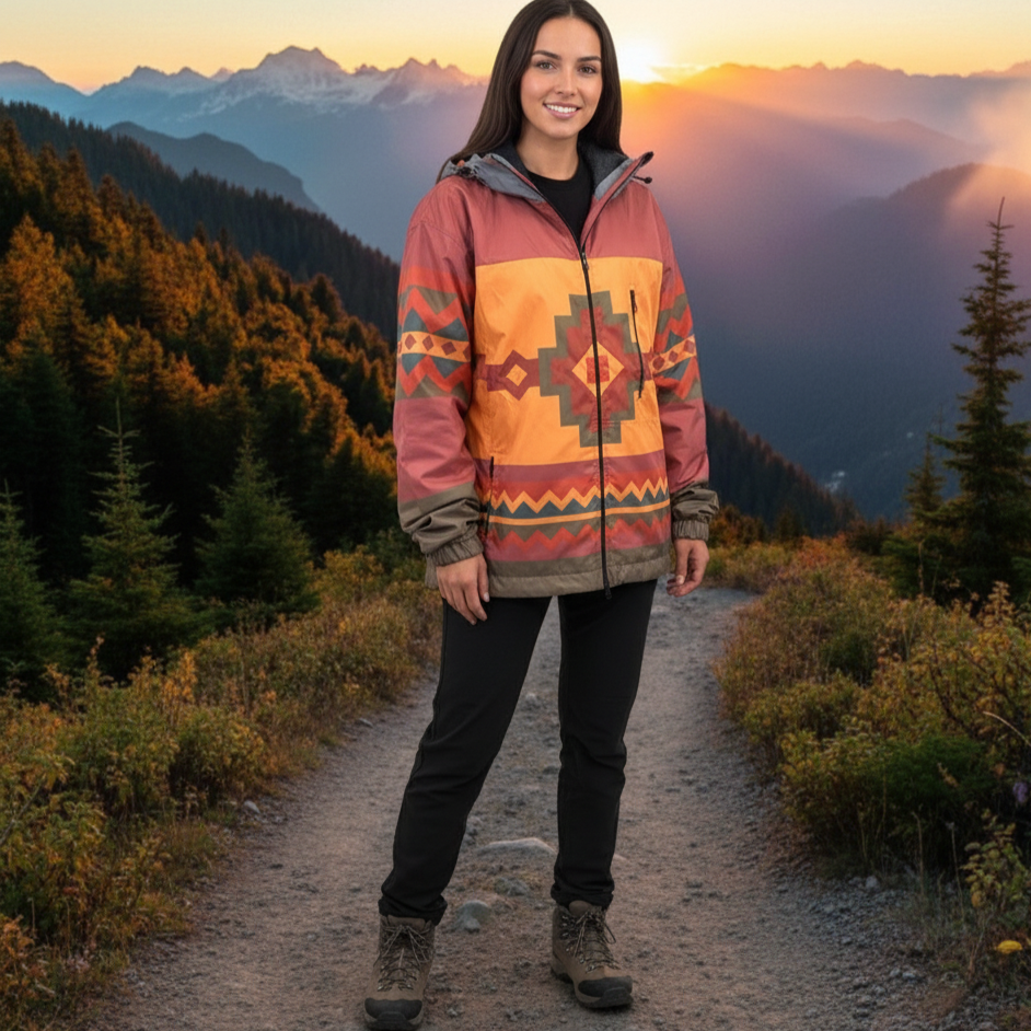 Designed for everyday movement and transitional weather, the OLDTRIBES™ Windbreaker blends Indigenous artistry with functional outerwear. Lightweight, water-resistant, and made to layer — this piece offers practical protection with bold visual impact.