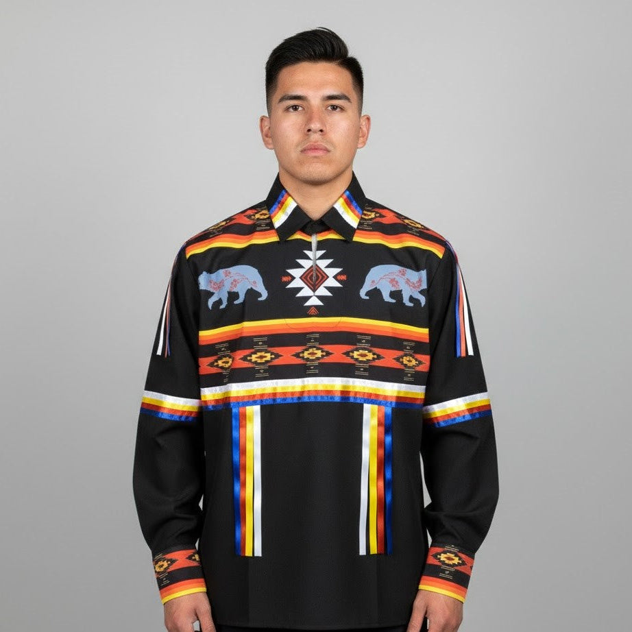 Our jackets come from Indigenous countries—Peru, Guatemala, Mexico, and Ecuador—and are 100% handmade. Our blankets are manufactured in Canada, and our beadwork is made by local artisans in Alberta.