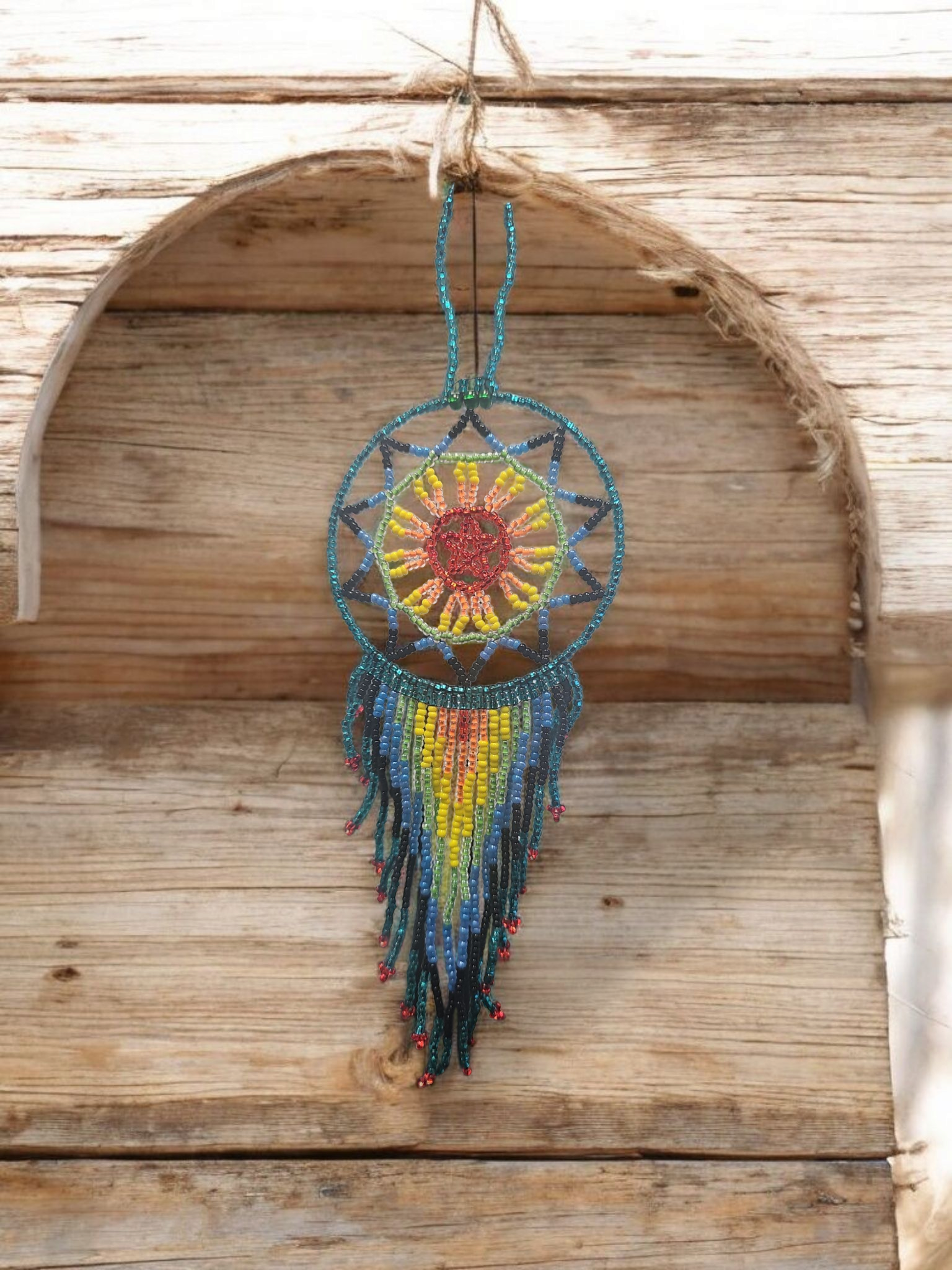 Embrace the beauty of the cosmos with this enchanting Celestial Beaded Handmade Dreamcatcher. Designed to inspire peace, clarity, and celestial wonder, this piece adds a gentle sparkle to any space. Carefully handcrafted with delicate beads and intricate threads, it brings both artistry and meaning to your decor.