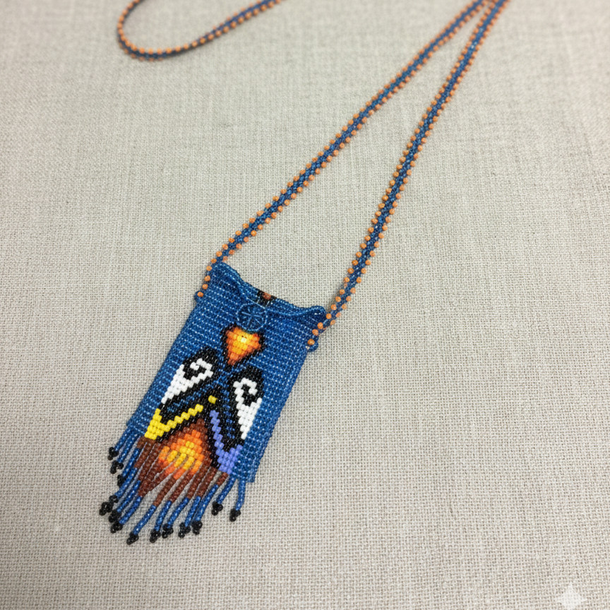 Carry tradition, meaning, and artistry with this handcrafted beaded medicine bag necklace. Thoughtfully designed, this piece blends cultural heritage with wearable style, making it both symbolic and decorative.
