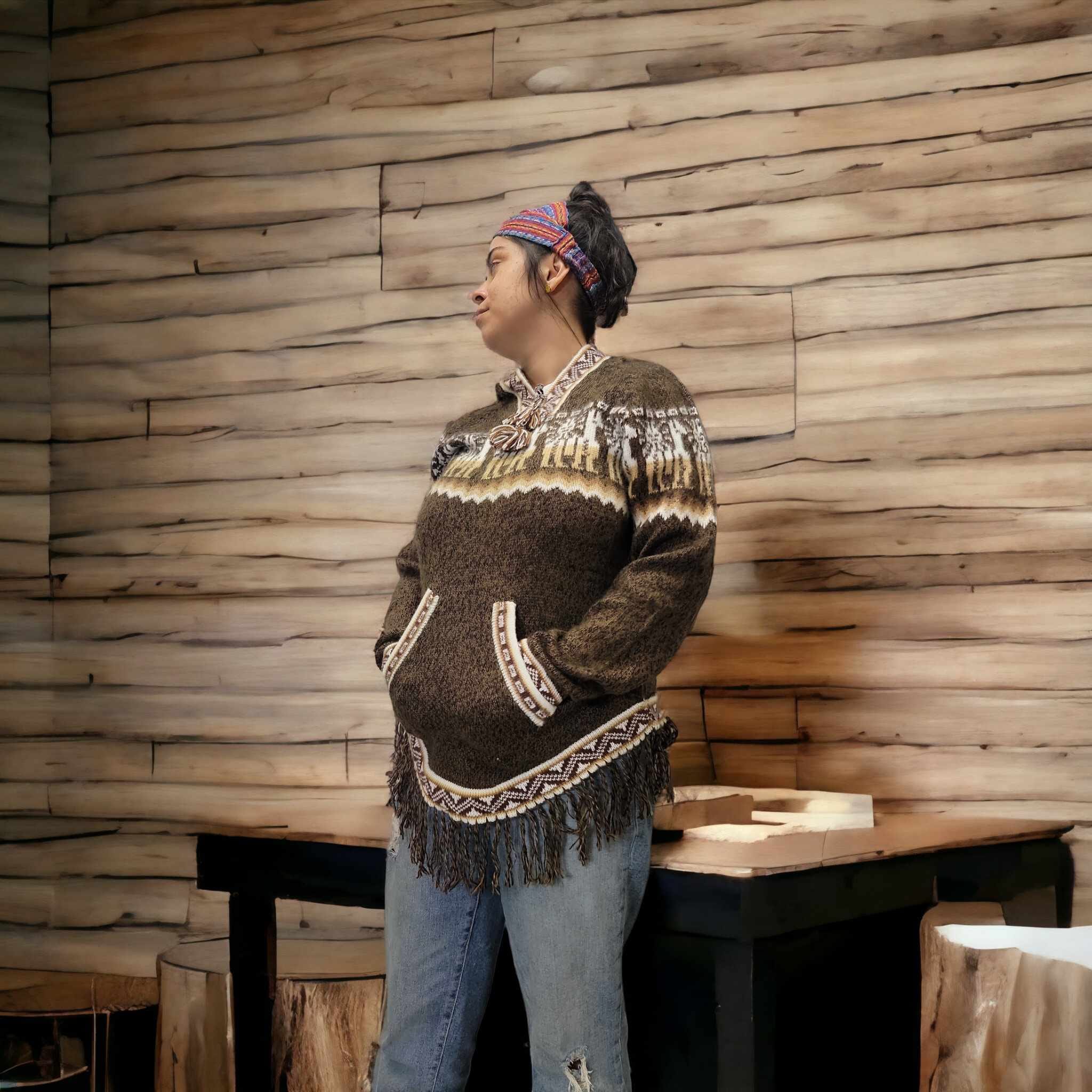 Our jackets come from Indigenous countries—Peru, Guatemala, Mexico, and Ecuador—and are 100% handmade. Our blankets are manufactured in Canada, and our beadwork is made by local artisans in Alberta.