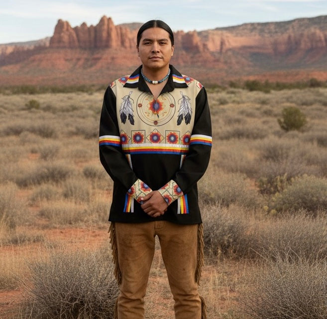 Our jackets come from Indigenous countries—Peru, Guatemala, Mexico, and Ecuador—and are 100% handmade. Our blankets are manufactured in Canada, and our beadwork is made by local artisans in Alberta.