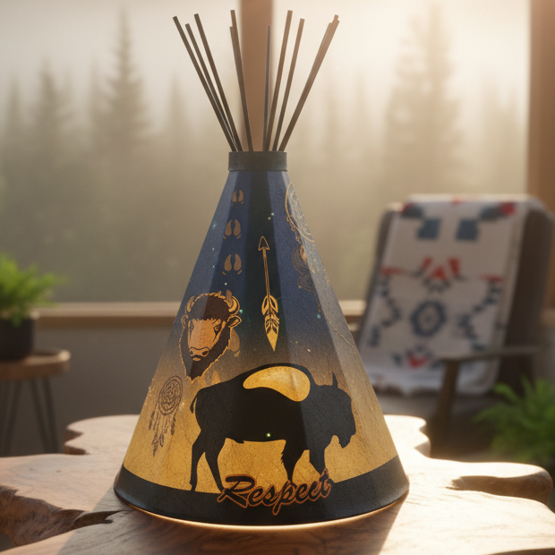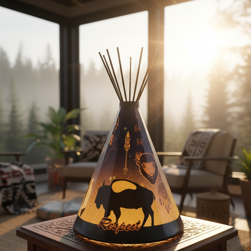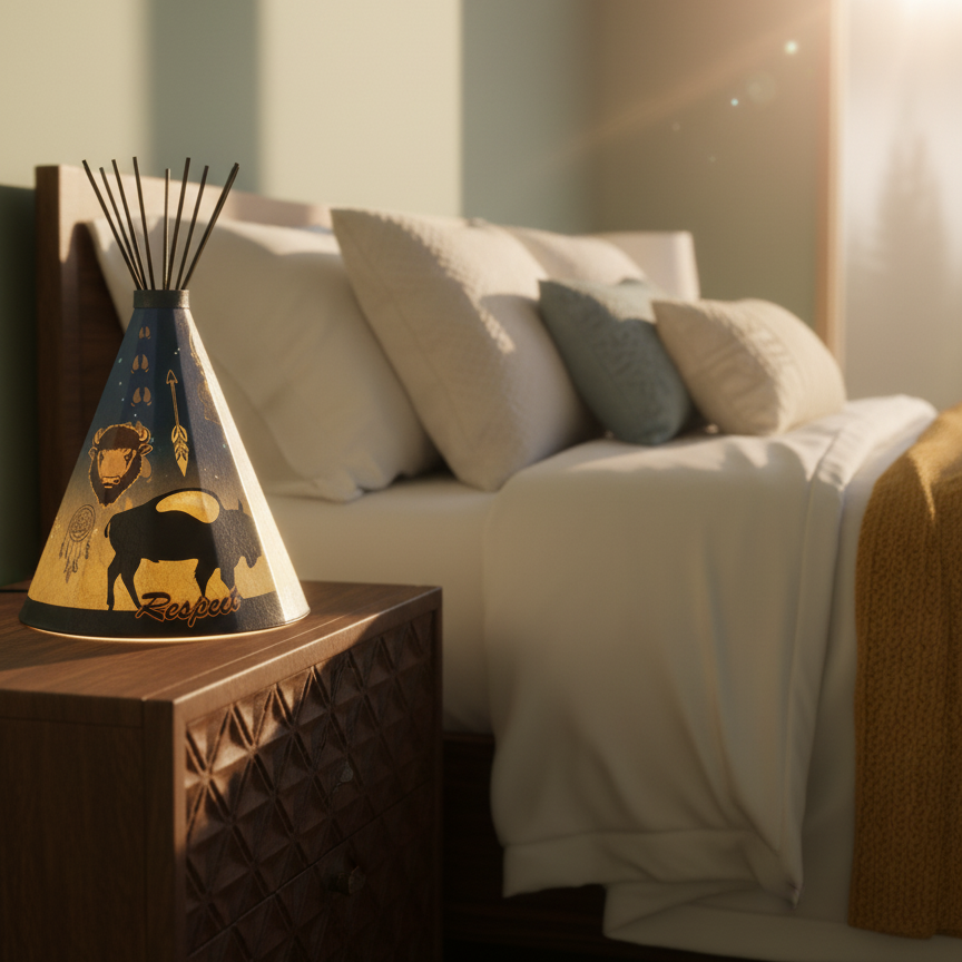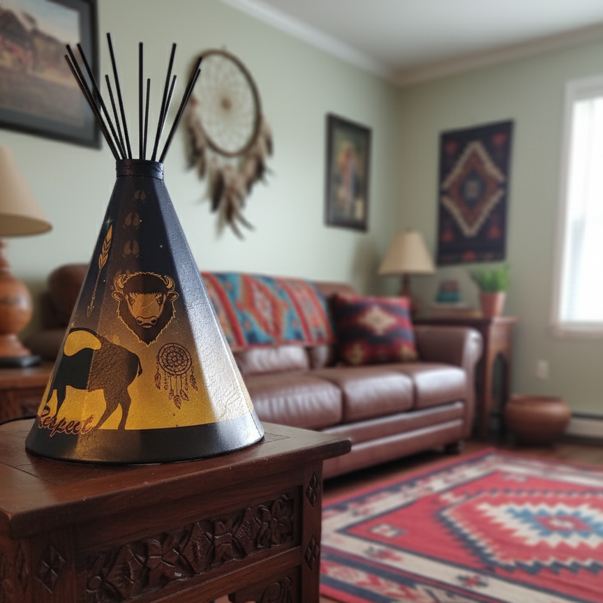 The Teepee Table Lamp is a compact and efficient lighting fixture designed for indoor residential use. Inspired by Native American teepee structures, it combines stable performance with cultural aesthetics. The unit operates on standard household voltage (AC 110–130V) and includes a low-power LED filament bulb for energy-efficient illumination.