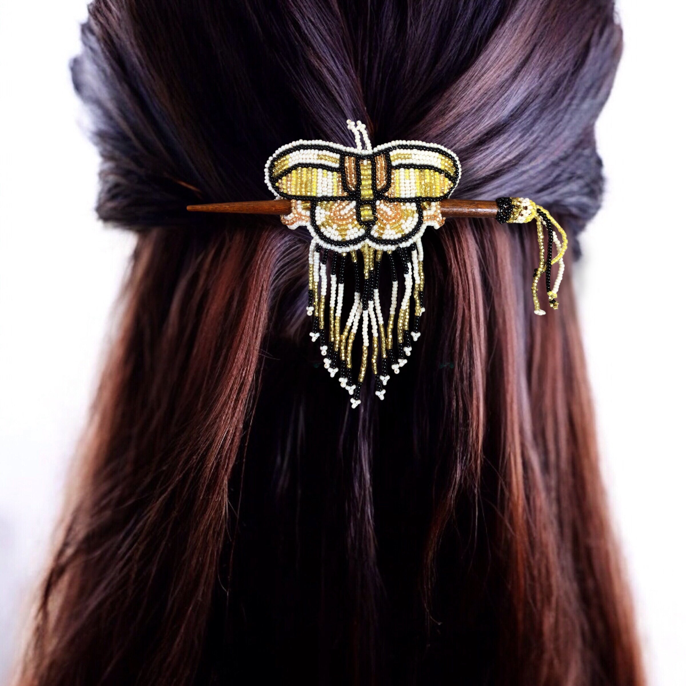 🌸 Wooden Stick Butterfly Beaded Barrette with Fringes 🌸