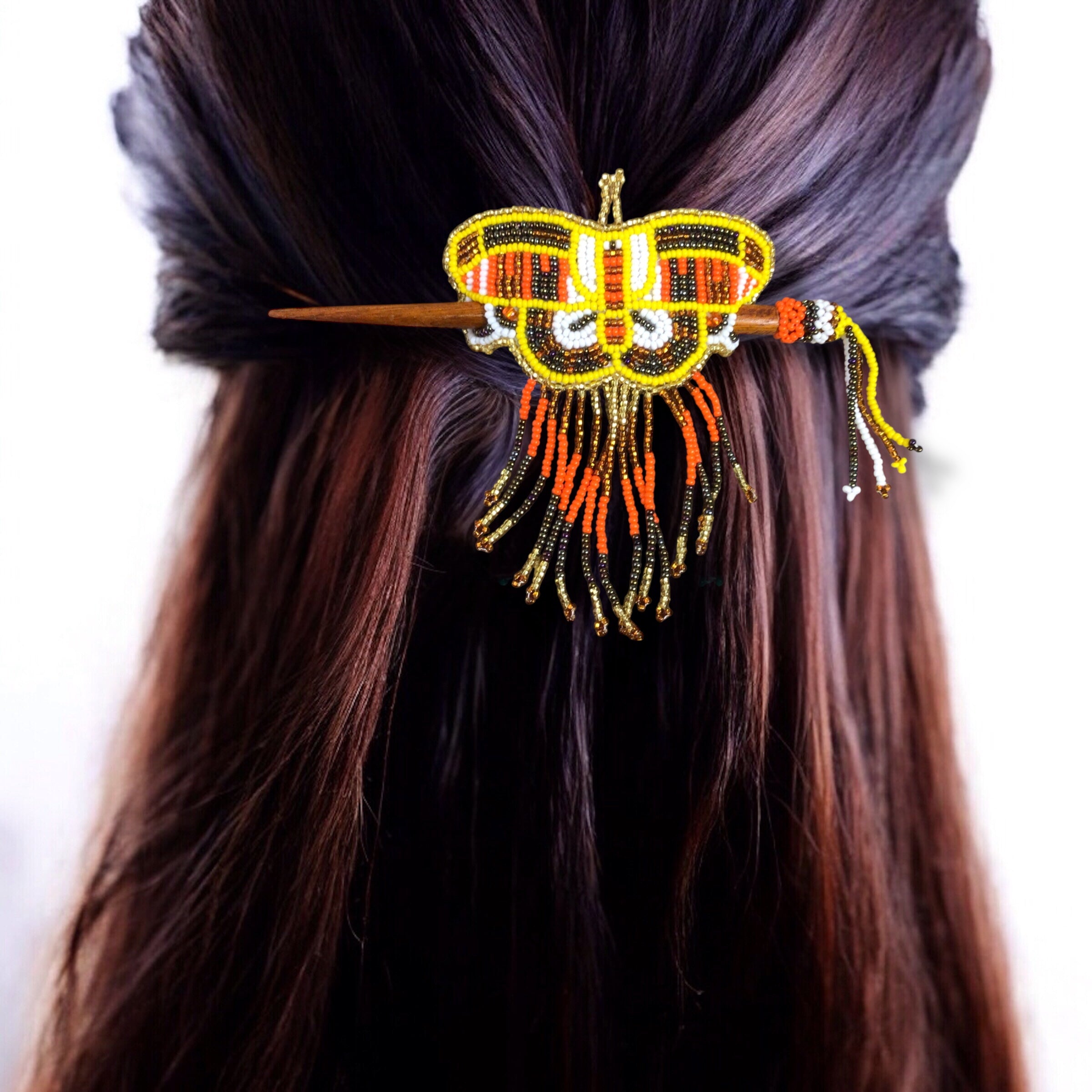 🌸 Wooden Stick Butterfly Beaded Barrette with Fringes 🌸