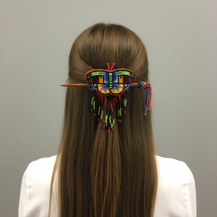 Whether you're heading to a festival, a summer picnic, or just want to elevate your everyday look, this Butterfly Beaded Barrette brings a whimsical, artistic touch to your style.