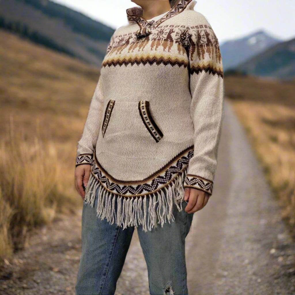 Our jackets come from Indigenous countries—Peru, Guatemala, Mexico, and Ecuador—and are 100% handmade. Our blankets are manufactured in Canada, and our beadwork is made by local artisans in Alberta.