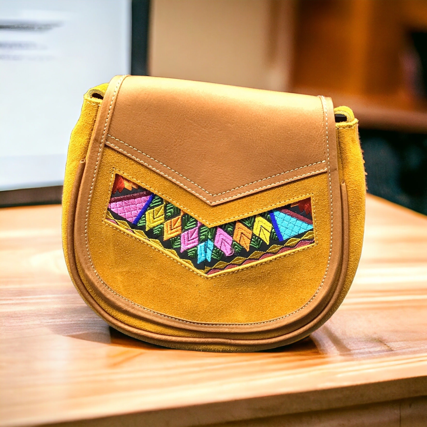 Camel arrow Leather Embroidery Crossbody Purse ( 8X7 INCH)
