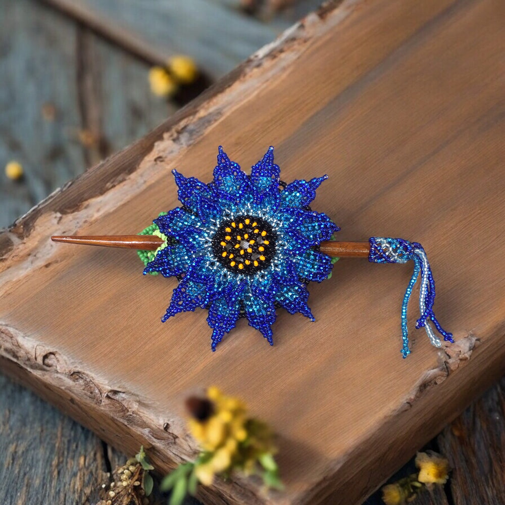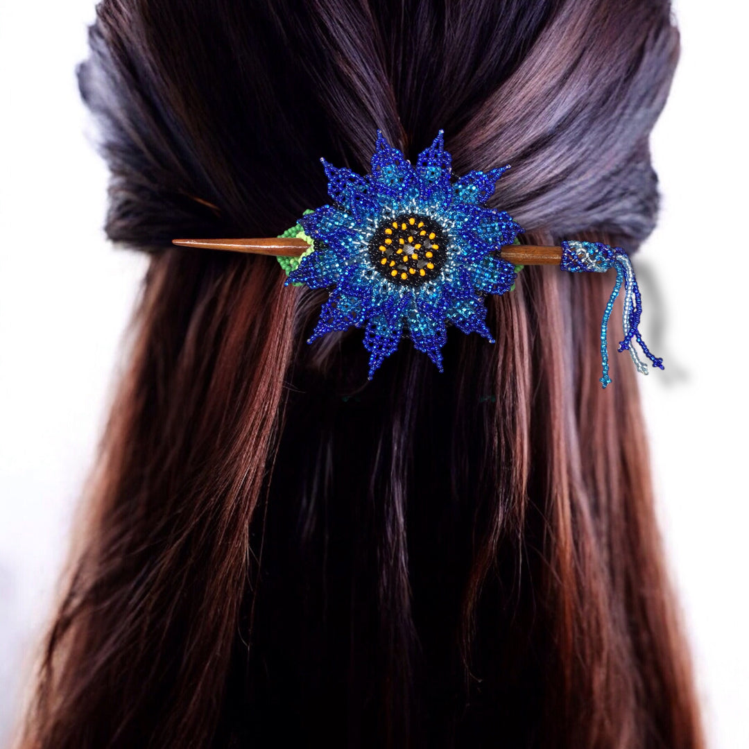 This elegant barrette combines a handcrafted floral design with a smooth wooden stick, creating a sophisticated, nature-inspired accessory. Perfect for any occasion, it offers both beauty and functionality.