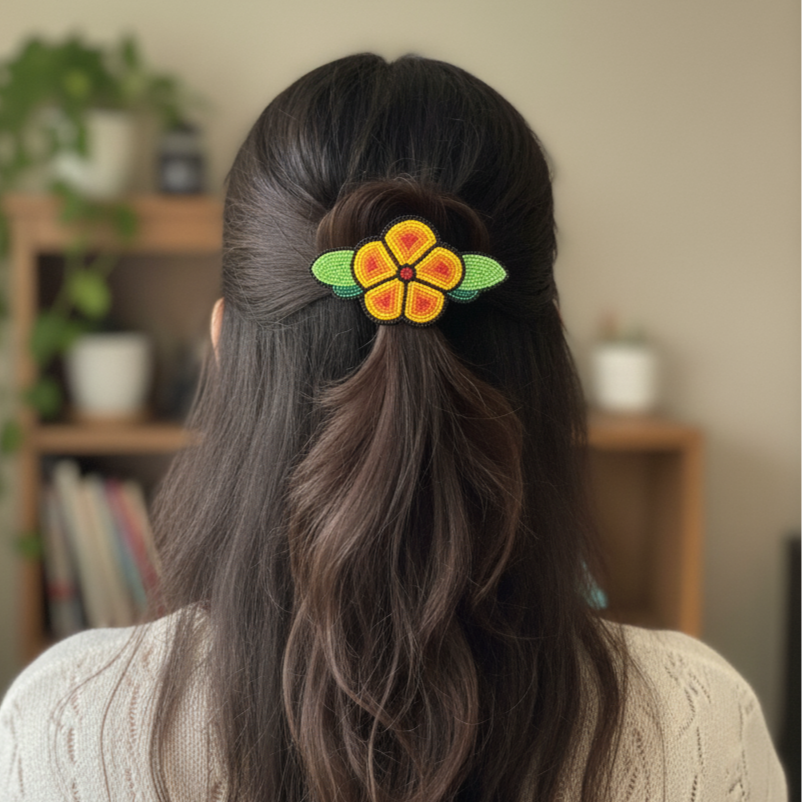Each barrette is a one-of-a-kind creation that honors Indigenous beadwork traditions—combining cultural expression, modern elegance, and timeless craftsmanship.