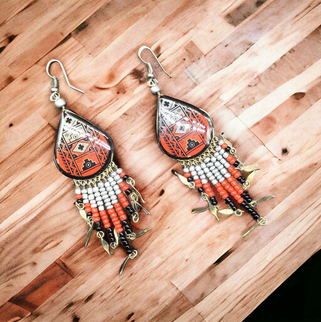 OldTribes™ Southwestern Painted Red and Black Earrings