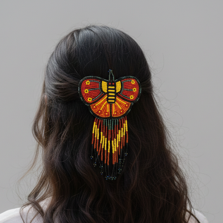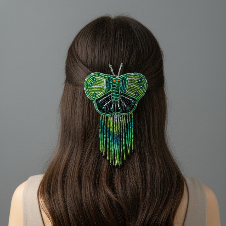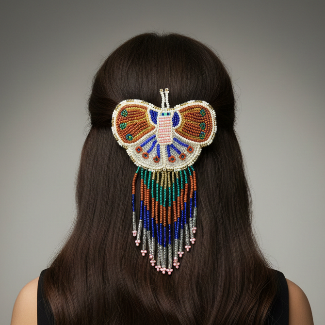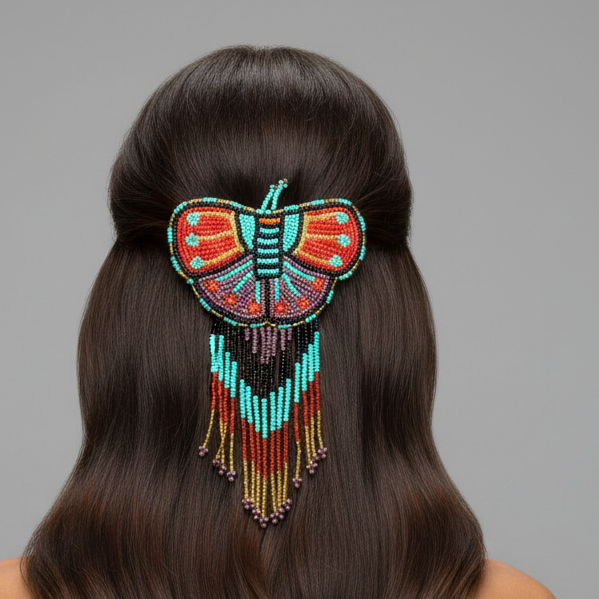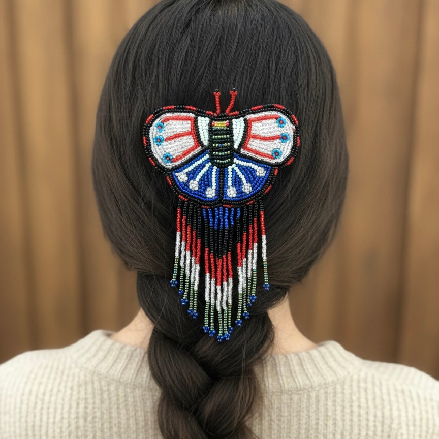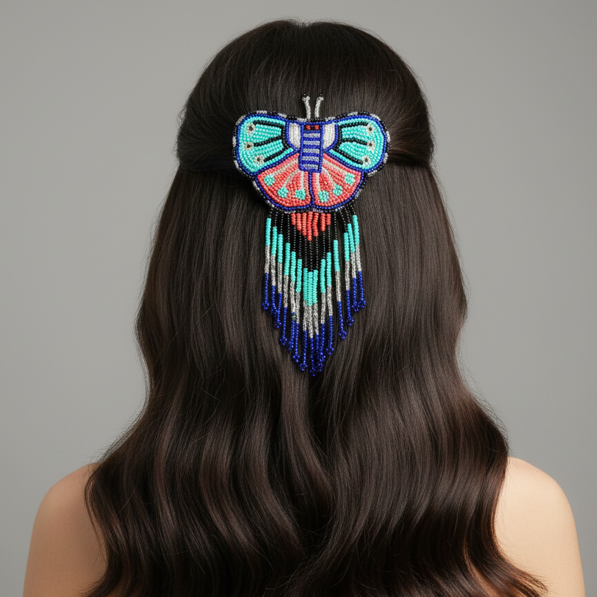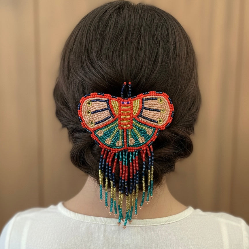 Butterfly Beaded Barrettes with Fringes