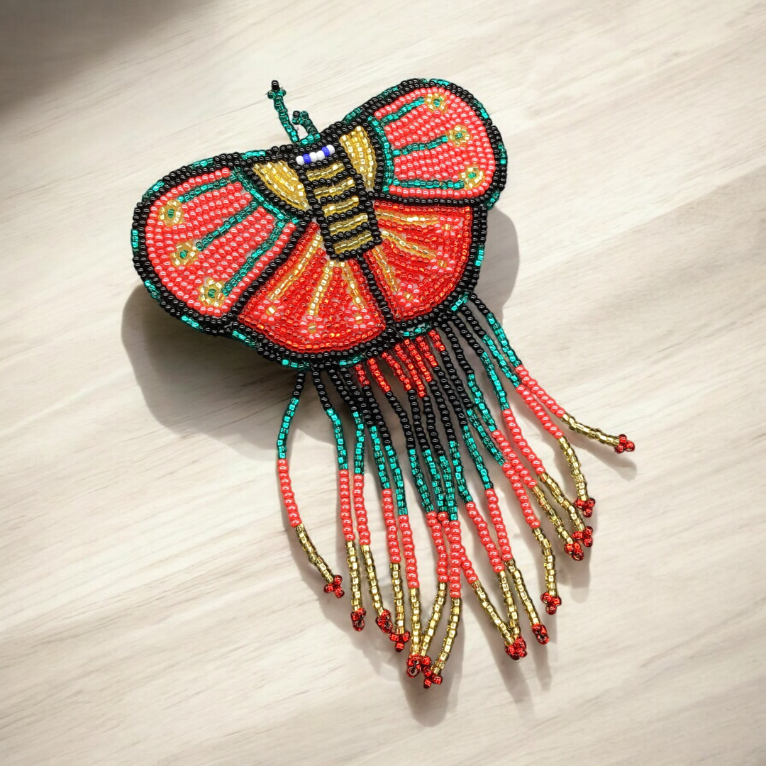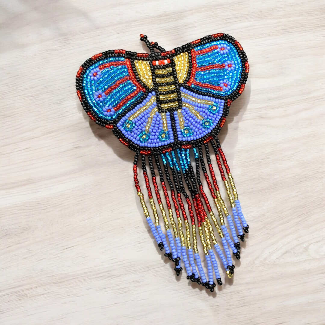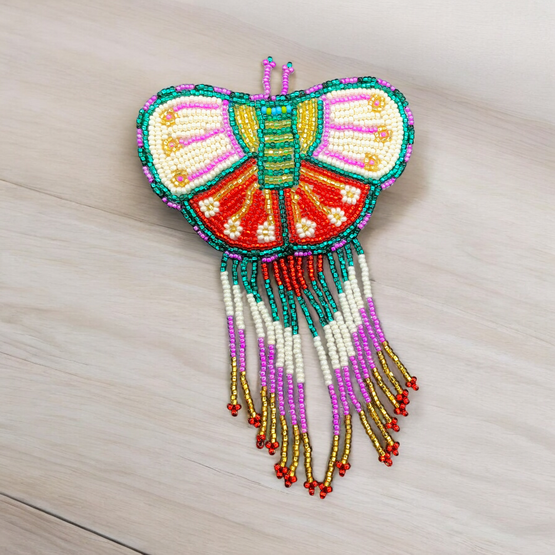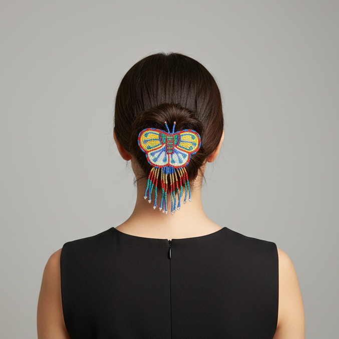 Butterfly Beaded Barrettes with Fringes