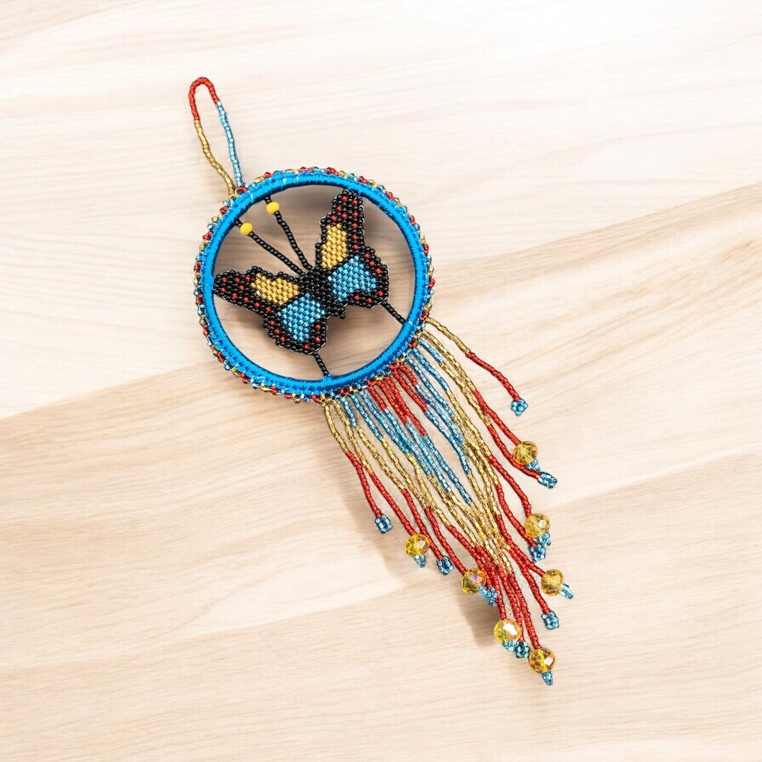 These elegant Pink Accent Butterfly decor are a perfect accessory to decorate any car, wall, or bathroom stall! It is artistically handmade, adding vibrancy to even the plainest of surfaces. Adorn your home with this beautiful handmade pink accent dream catcher. Crafted with beaded loops, this elegant piece is sure to be a perfect gift for any occasion! Show your loved ones the captivating art of a unique dream catcher butterflies or treat yourself to one-of-a-kind modern art.