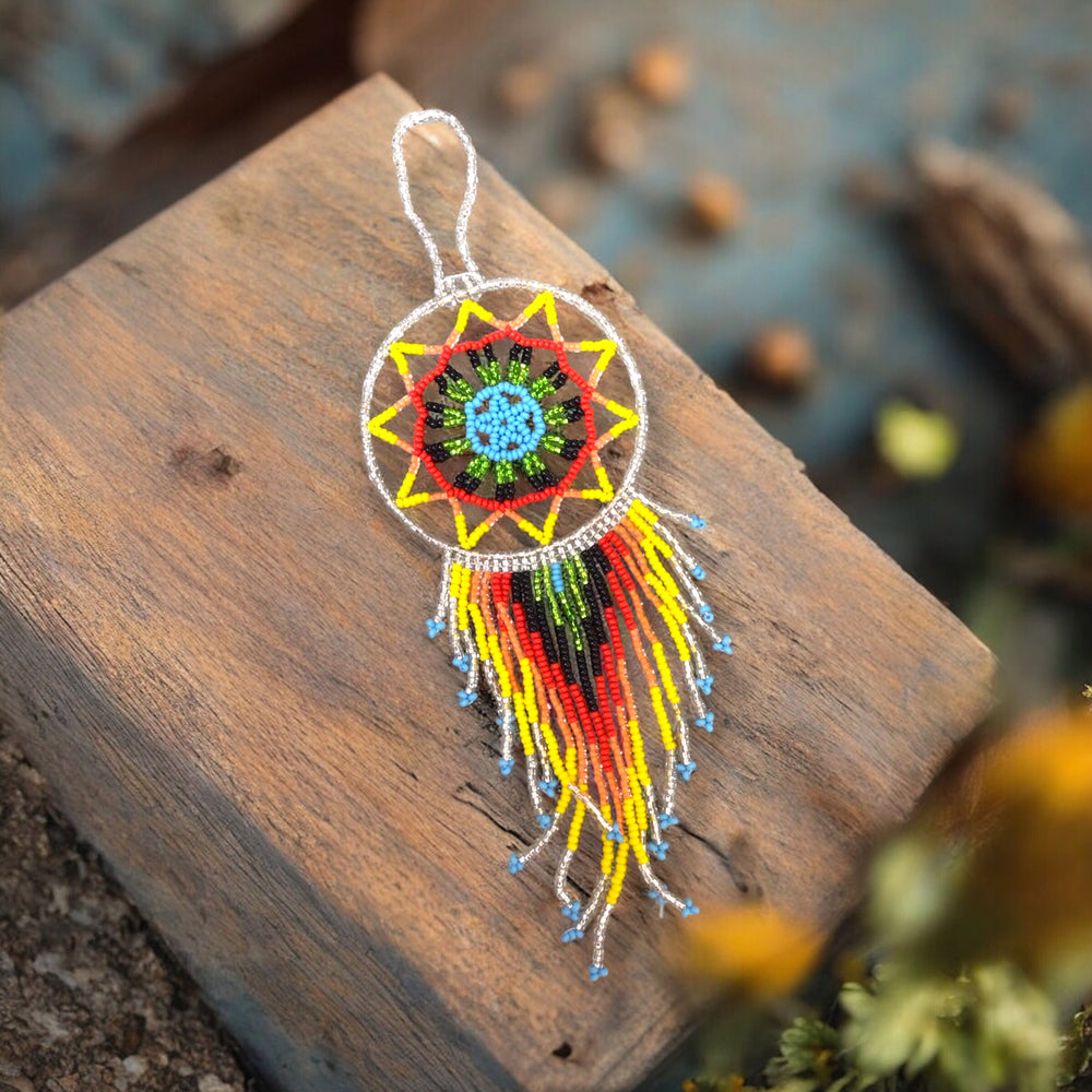 This stunning handmade dreamcatcher features intricate full beadwork crafted with care by a Native artisan. Rich in tradition and meaning, it’s more than decor—it’s a symbol of protection and cultural beauty. Perfect for adding a sacred touch to any space.