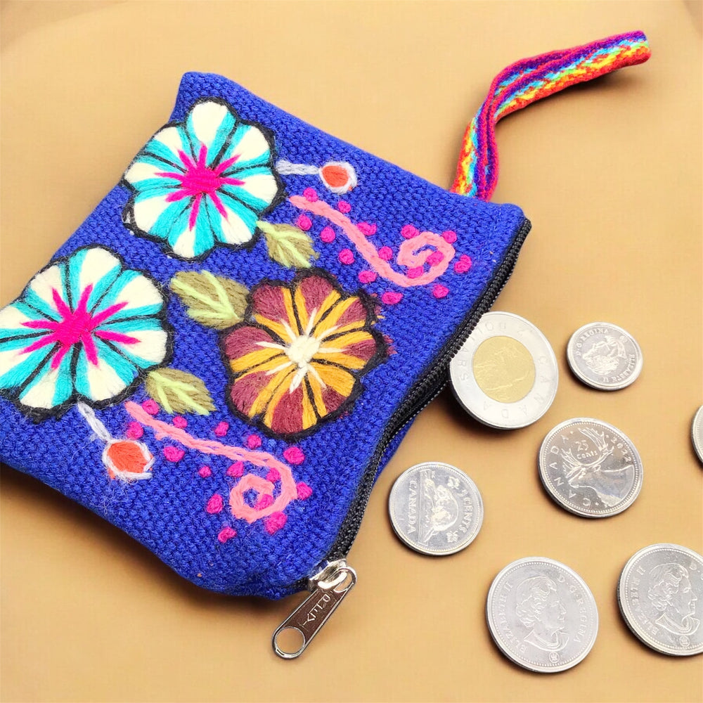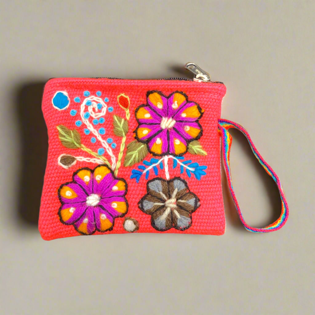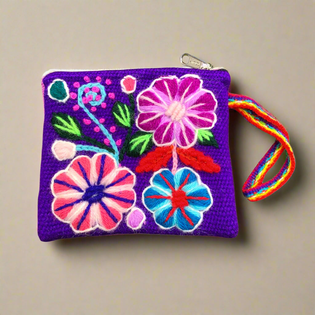 This embroidered handmade coin purse, measuring 11 cm in length and 10 cm in height, is the perfect size for holding coins, cards, or small essentials. Each purse is carefully handcrafted, making every one unique, with intricate flower embroidery that varies in color per order. The high-quality stitching ensures durability for long-lasting use, while its charming design makes it a versatile accessory for everyday wear or a thoughtful gift for someone special.
