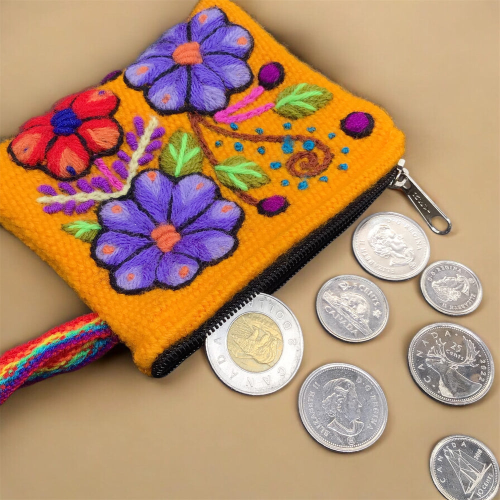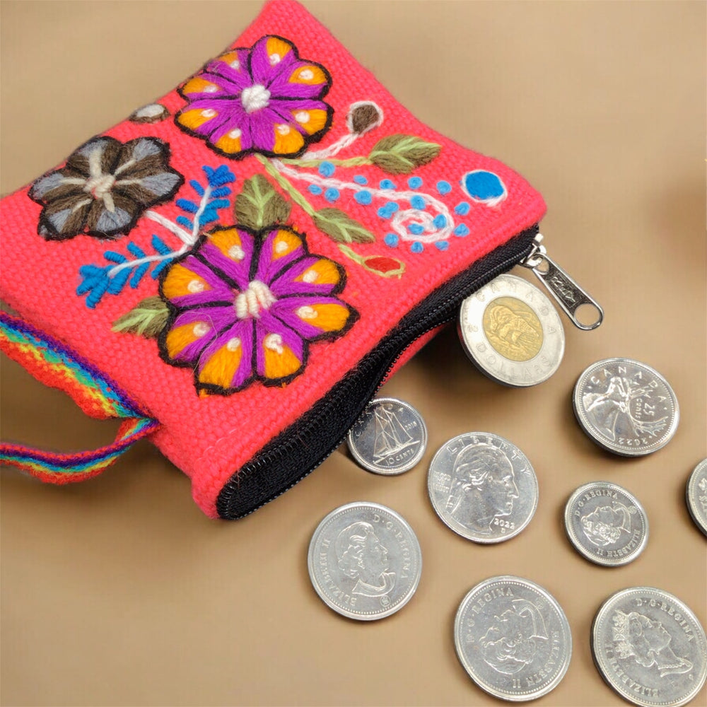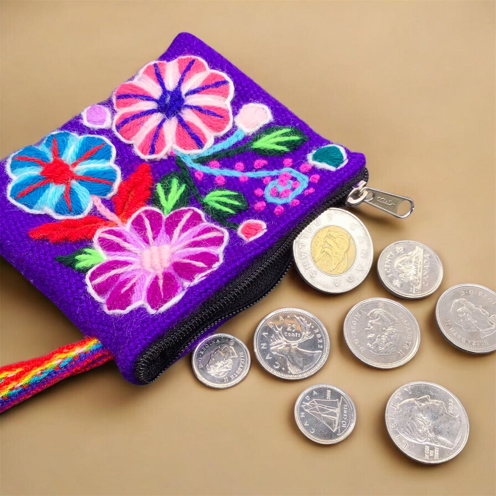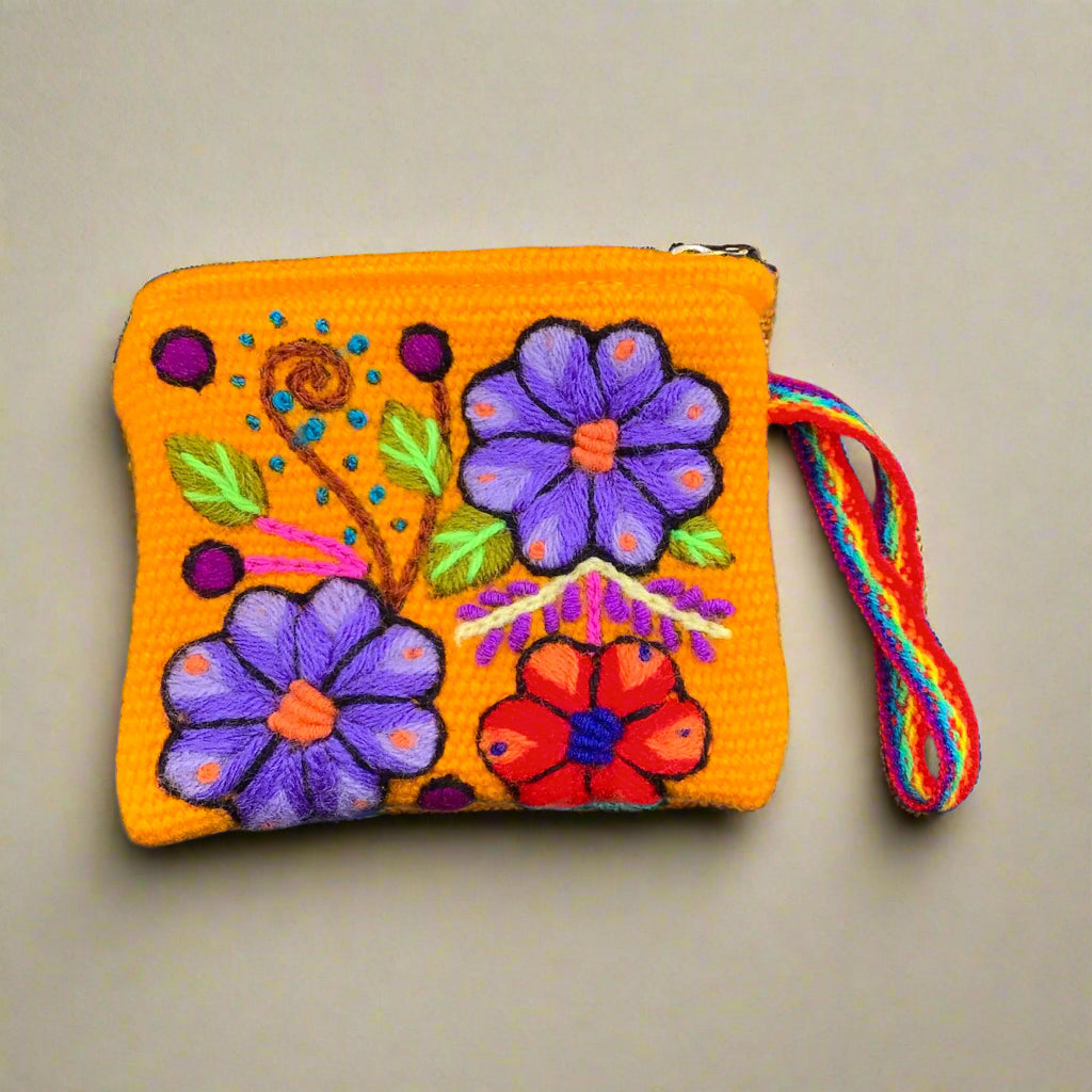 This embroidered handmade coin purse, measuring 11 cm in length and 10 cm in height, is the perfect size for holding coins, cards, or small essentials. Each purse is carefully handcrafted, making every one unique, with intricate flower embroidery that varies in color per order. The high-quality stitching ensures durability for long-lasting use, while its charming design makes it a versatile accessory for everyday wear or a thoughtful gift for someone special.