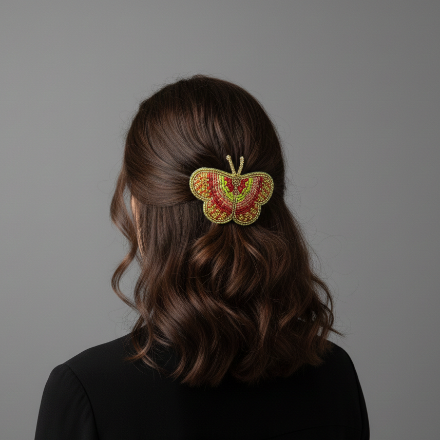 Peach and Yellow Butterfly Beaded Barrette