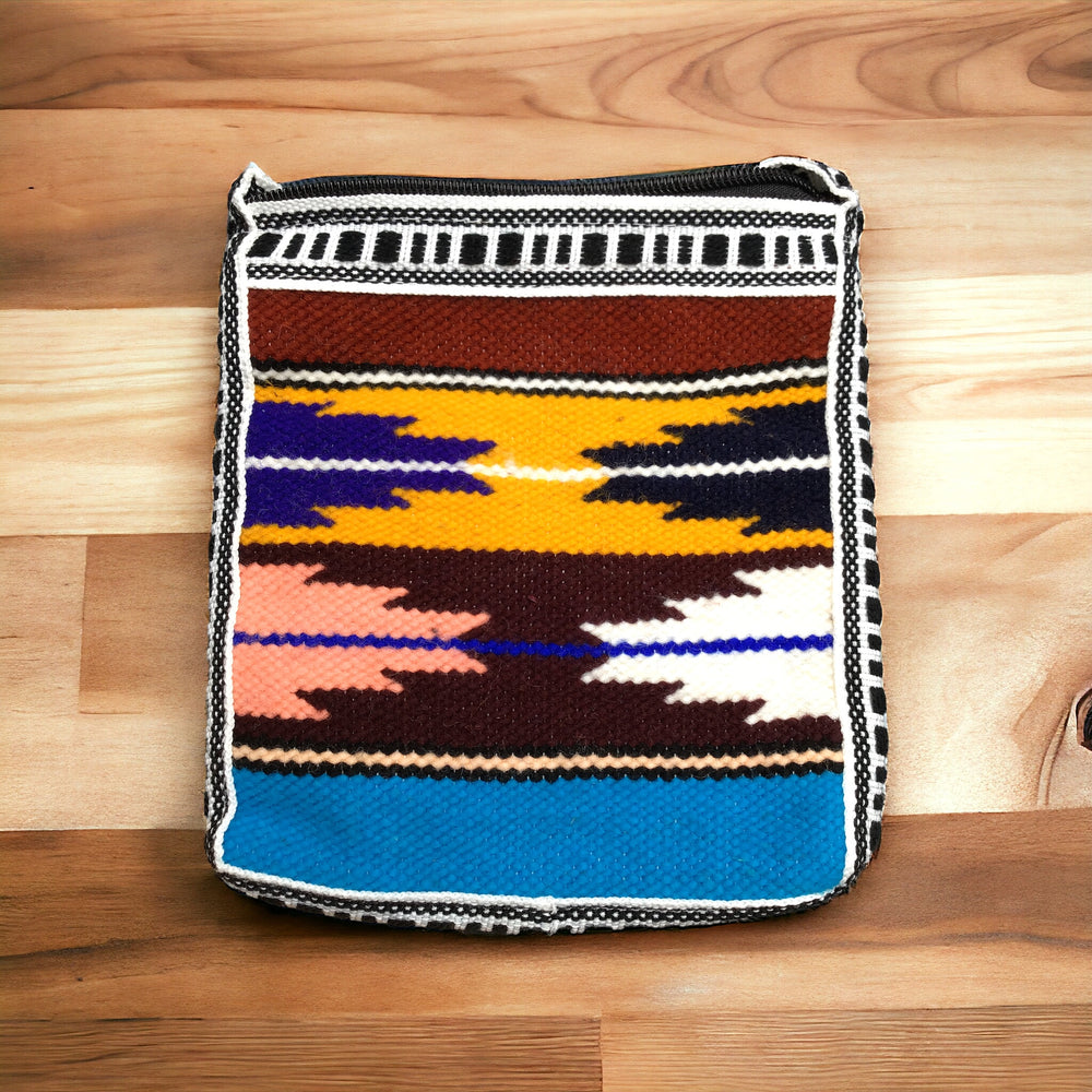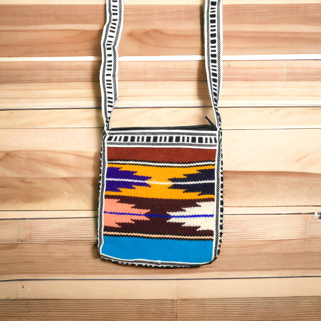 Stand out from the crowd with this colorful crossbody bag that combines fashion and functionality. Whether you're running errands or heading out for a night on the town, this bag is the perfect accessory to carry your essentials in style. Add a touch of tribal flair to your outfit with this one-of-a-kind crossbody bag.