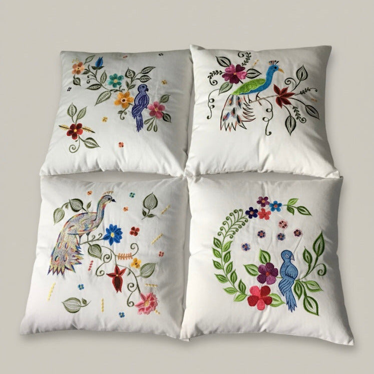 The floral designs are stitched with care, creating texture and depth that printed pillows simply cannot match. The cotton fabric is comfortable and durable, making it perfect for everyday use.