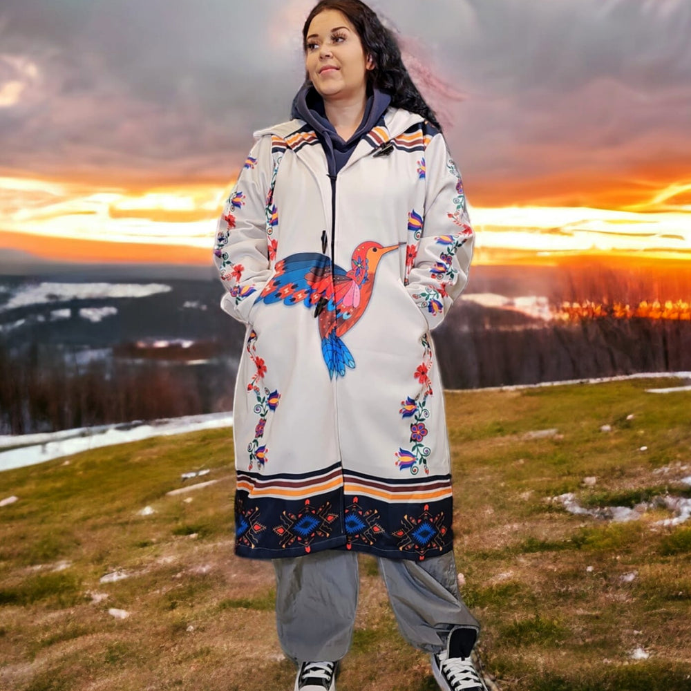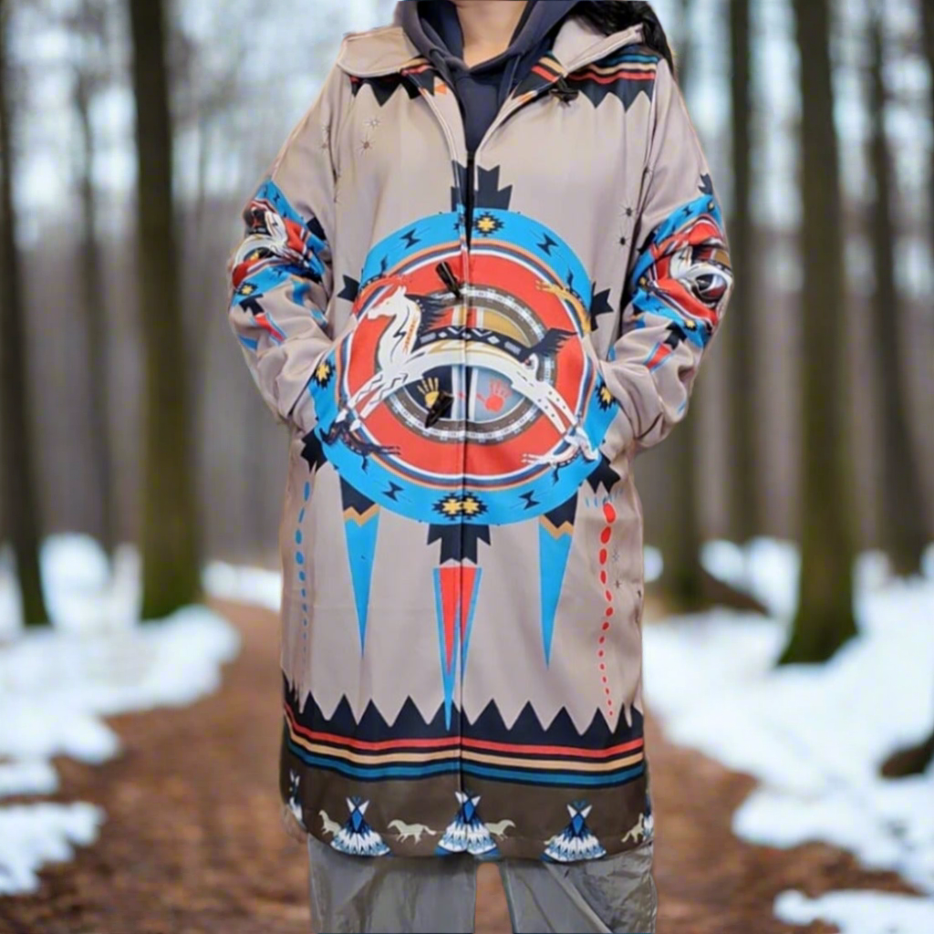 Inspired by Indigenous artistry, our long coats fuse timeless design with modern functionality. Each piece tells a story of heritage and style, made for those who embrace elegance in every season.
