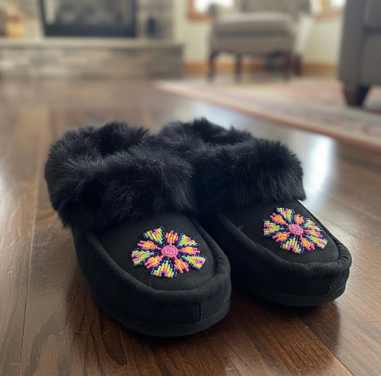 Moccasins are a type of soft, comfortable footwear that has been worn by Indigenous peoples of North America for centuries. They are typically made from soft, flexible materials. All of our Moccasins are 100% Made in Canada! We have sold Moccasins for generations and people keep coming back for more.