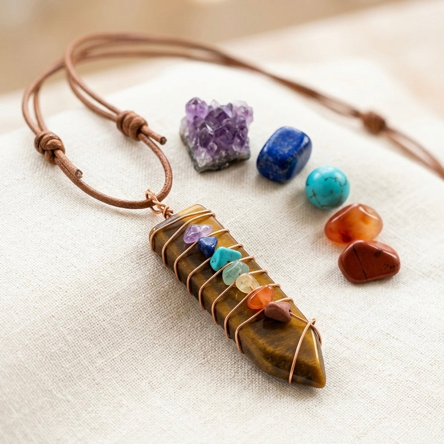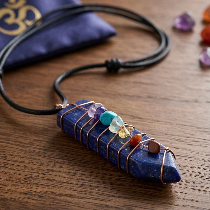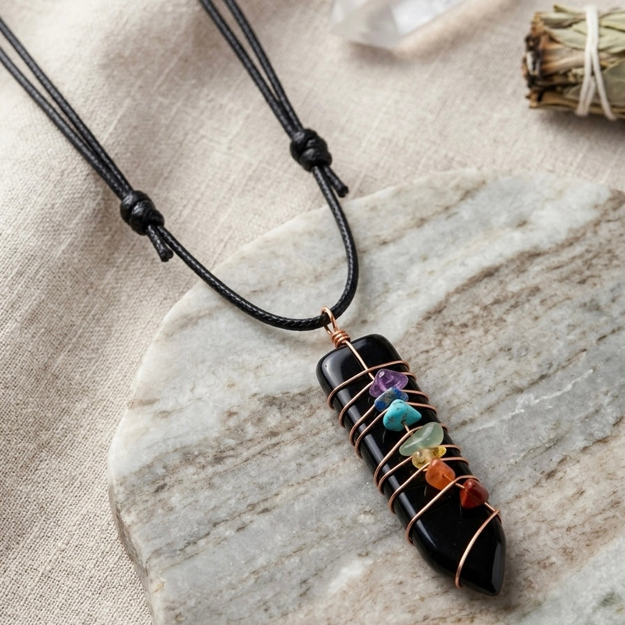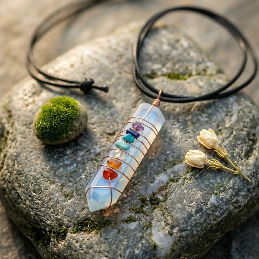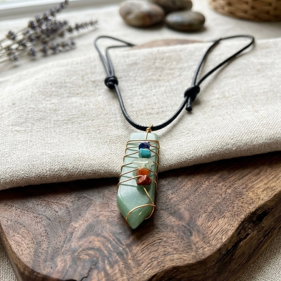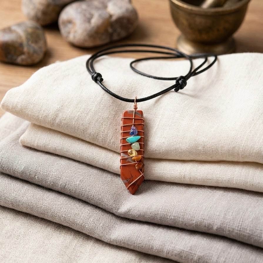 This unisex pendant features a unique design inspired by the concept of sword chakra. Crafted from natural stone, it exudes a sense of earthy elegance and spiritual significance.