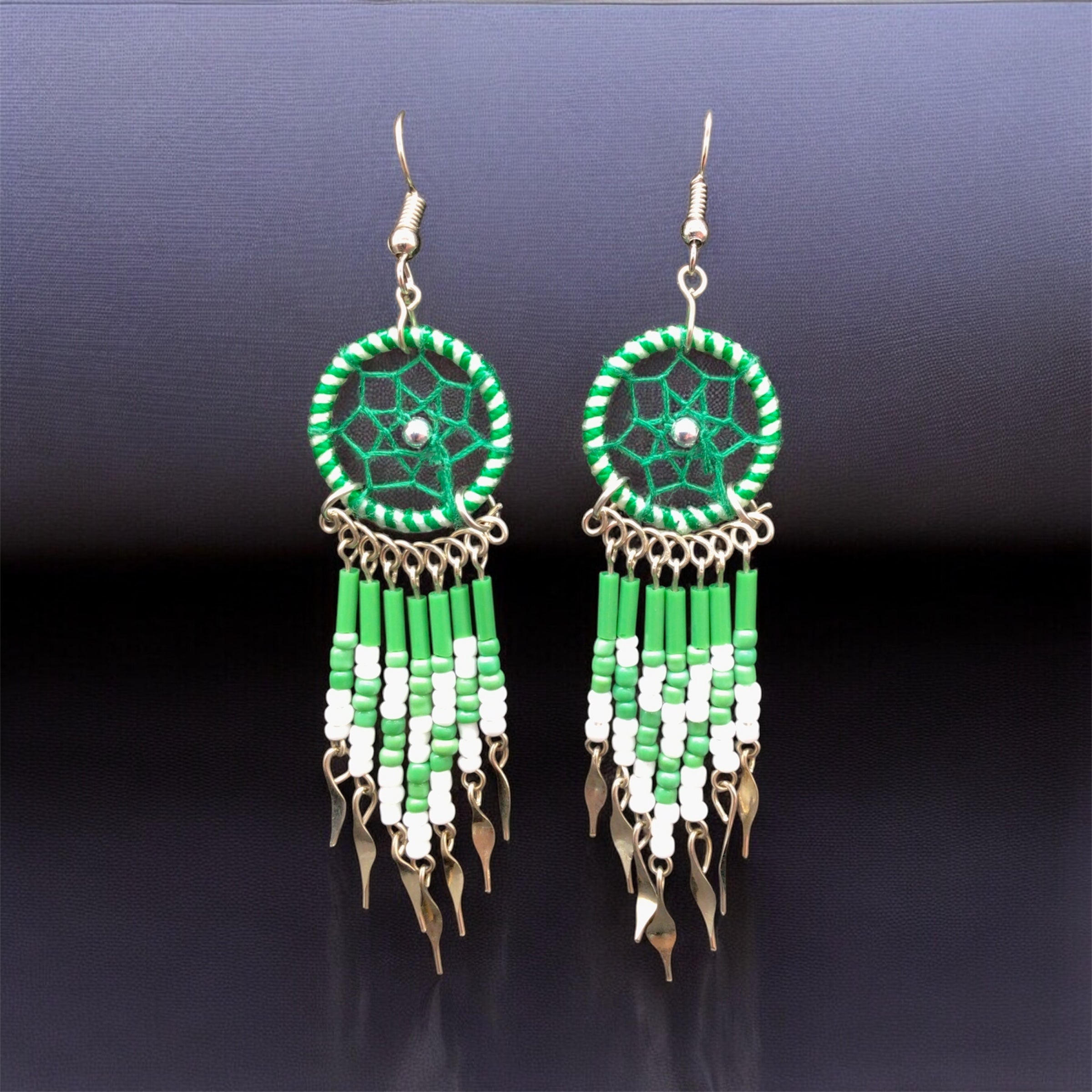 Add a mystical touch to your look with the Celestial Beaded Dreamcatcher Earrings. Featuring a vibrant, multi-colored bead design, these boho-chic earrings combine elegance with protection. Perfect for festivals, casual outings, or everyday wear, they’re a lightweight accessory that brings both beauty and positive energy to any outfit.