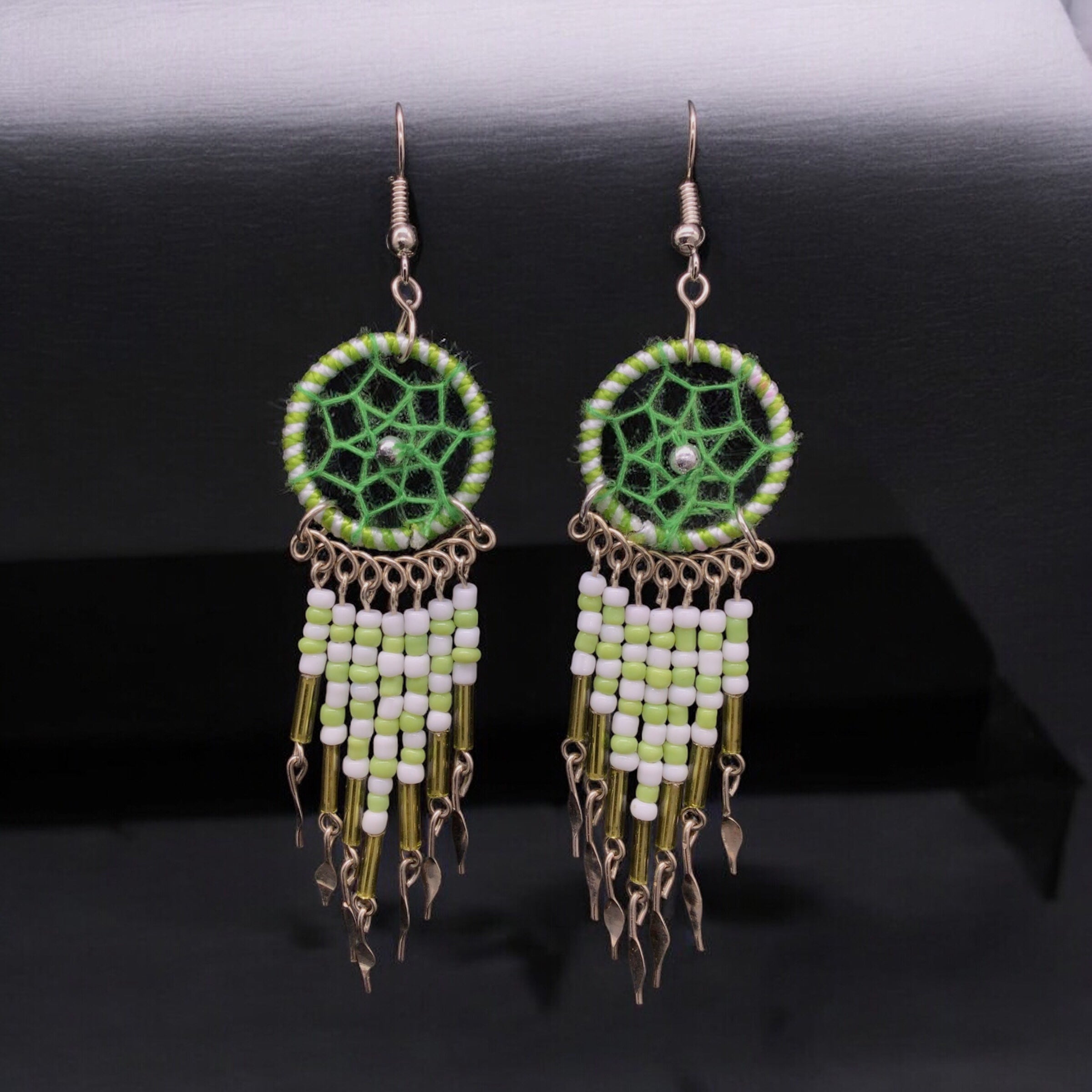 These exquisite Beaded Dreamcatcher earrings are a true testament to the artistry and craftsmanship of their creators. Each pair is meticulously handcrafted with utmost care and attention to detail. The intricate beadwork showcases a stunning combination of colors and patterns, making these earrings a unique and eye-catching accessory.