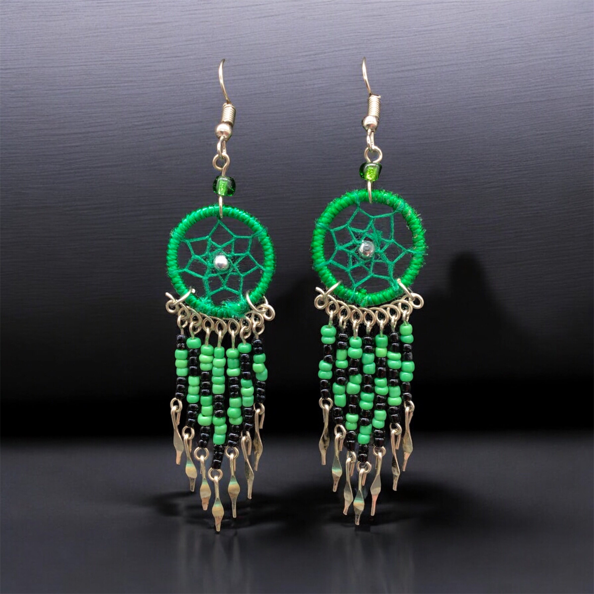 These exquisite Beaded Dreamcatcher earrings are a true testament to the artistry and craftsmanship of their creators. Each pair is meticulously handcrafted with utmost care and attention to detail. The intricate beadwork showcases a stunning combination of colors and patterns, making these earrings a unique and eye-catching accessory.