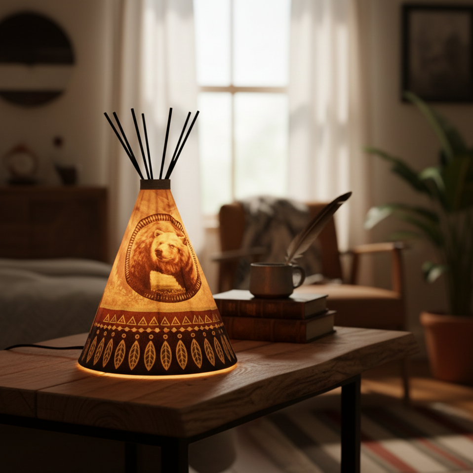 A warm, cone-shaped table lamp that instantly softens any room. Its gentle glow and artistic shade make it perfect for nightstands, desks, or cozy reading corners. A small statement piece that adds calm, warmth, and personality to your space.