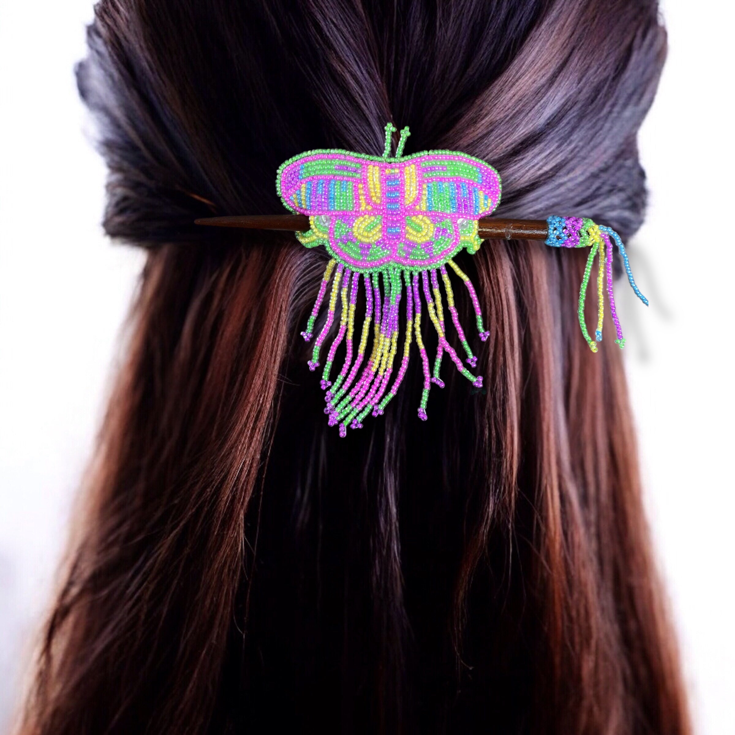 Whether you're heading to a festival, a summer picnic, or just want to elevate your everyday look, this Butterfly Beaded Barrette brings a whimsical, artistic touch to your style.