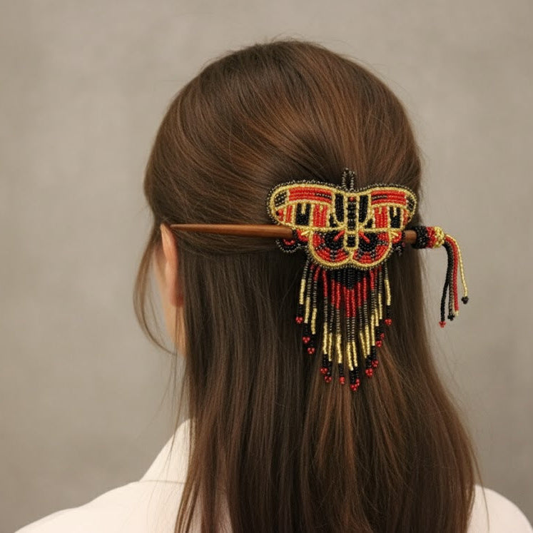 🌸 Wooden Stick Butterfly Beaded Barrette with Fringes 🌸