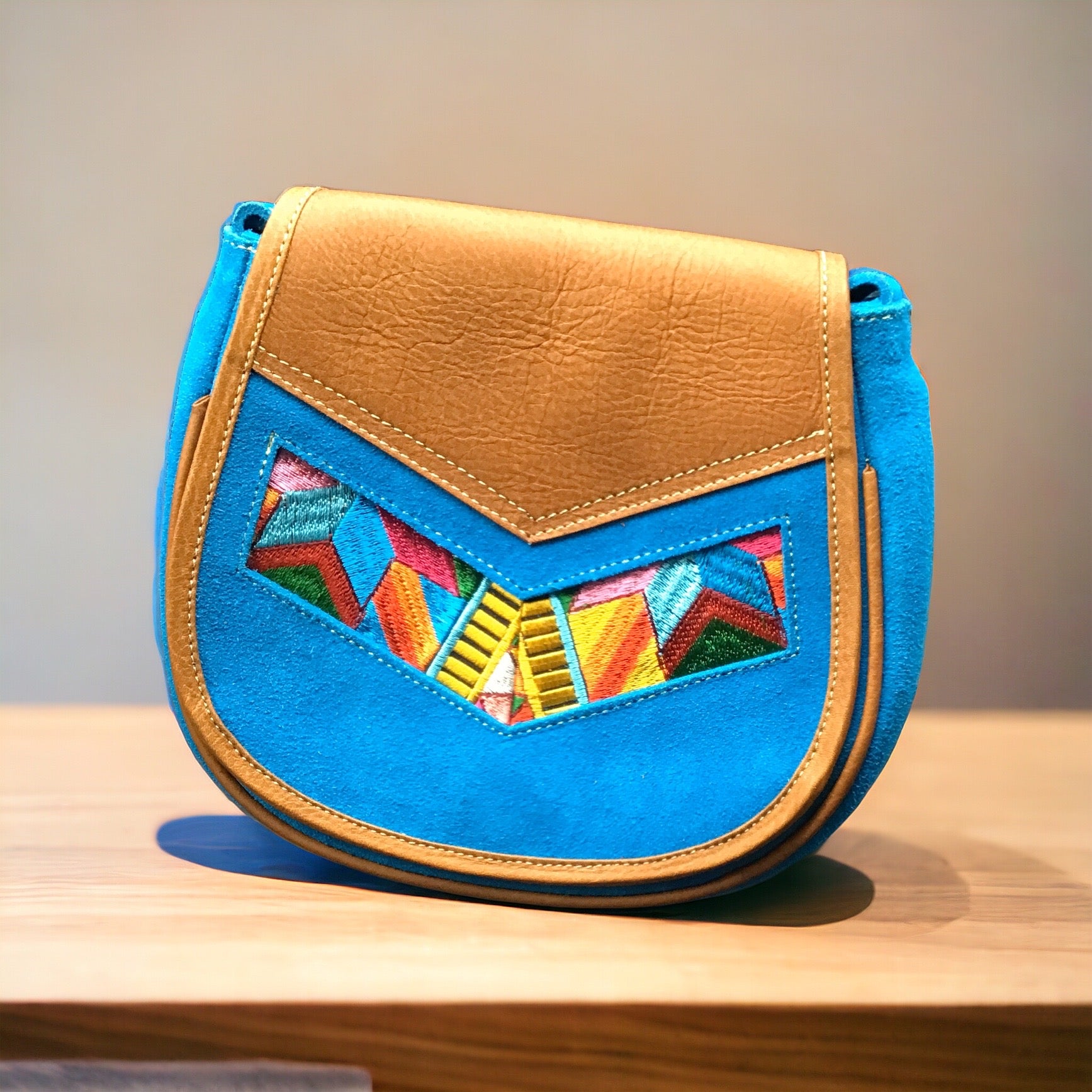 Camel arrow Leather Embroidery Crossbody Purse ( 8X7 INCH)