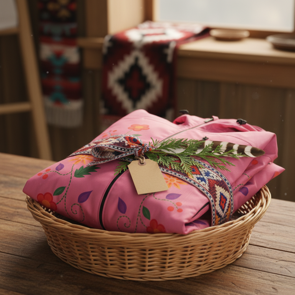Our jackets come from Indigenous countries—Peru, Guatemala, Mexico, and Ecuador—and are 100% handmade. Our blankets are manufactured in Canada, and our beadwork is made by local artisans in Alberta.