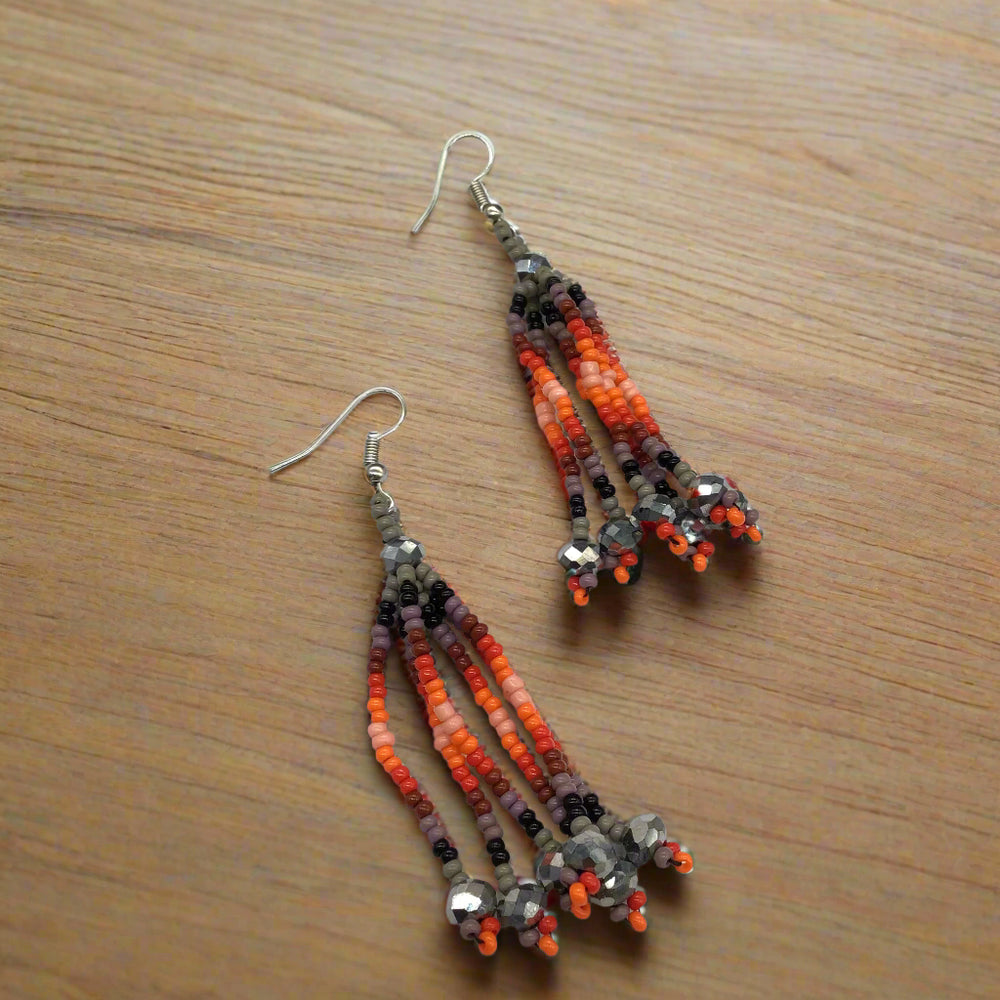 Six-Strand Beaded Cascade Earrings