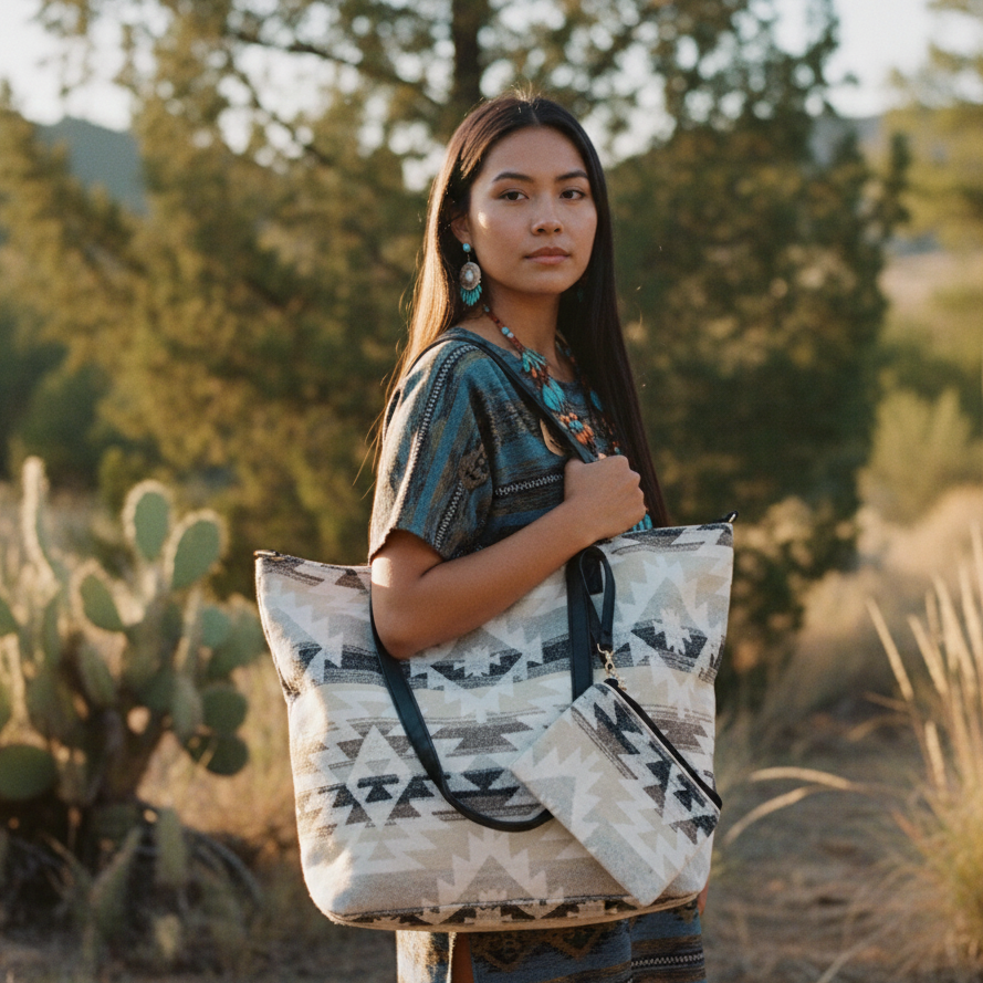 With its spacious design, the Large Native Bag offers both style and practicality, making it perfect for everyday use or special occasions. It combines the beauty of indigenous art with a commitment to environmental responsibility.