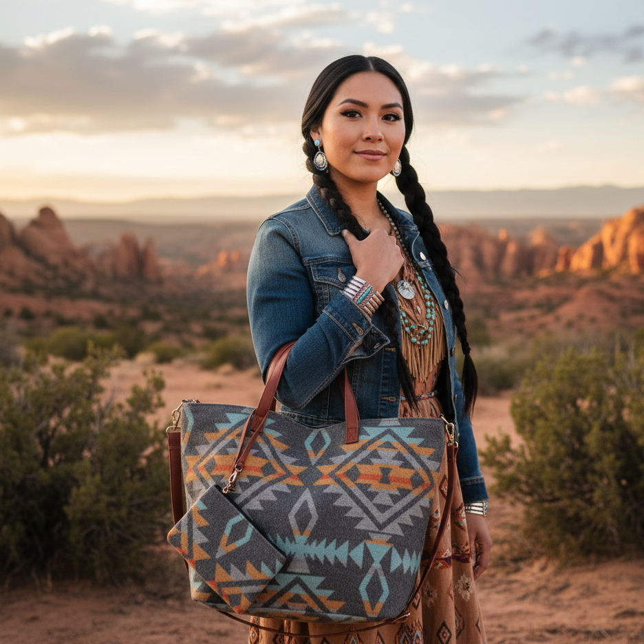 With its spacious design, the Large Native Bag offers both style and practicality, making it perfect for everyday use or special occasions. It combines the beauty of indigenous art with a commitment to environmental responsibility.