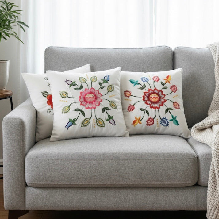 The floral designs are stitched with care, creating texture and depth that printed pillows simply cannot match. The cotton fabric is comfortable and durable, making it perfect for everyday use.