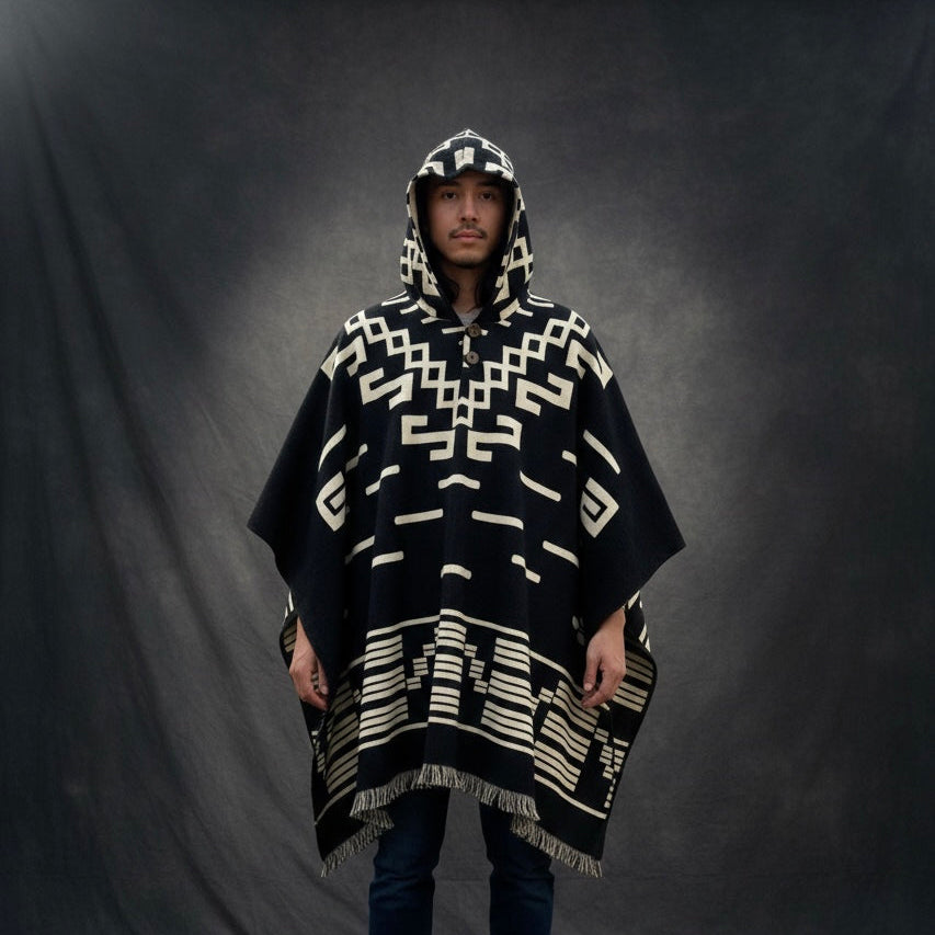 Indigenous fair trade ponchos are all made from either the finest, lanolin-free, hypoallergenic Alpaca fibres 100% organic. All our Men's poncho styles are perfect for staying warm on a cool evening or dressing up an outfit. Like all of our ethically made clothing, each piece was created by artisans using time-honored traditions, working in safe conditions, and earning a living wage