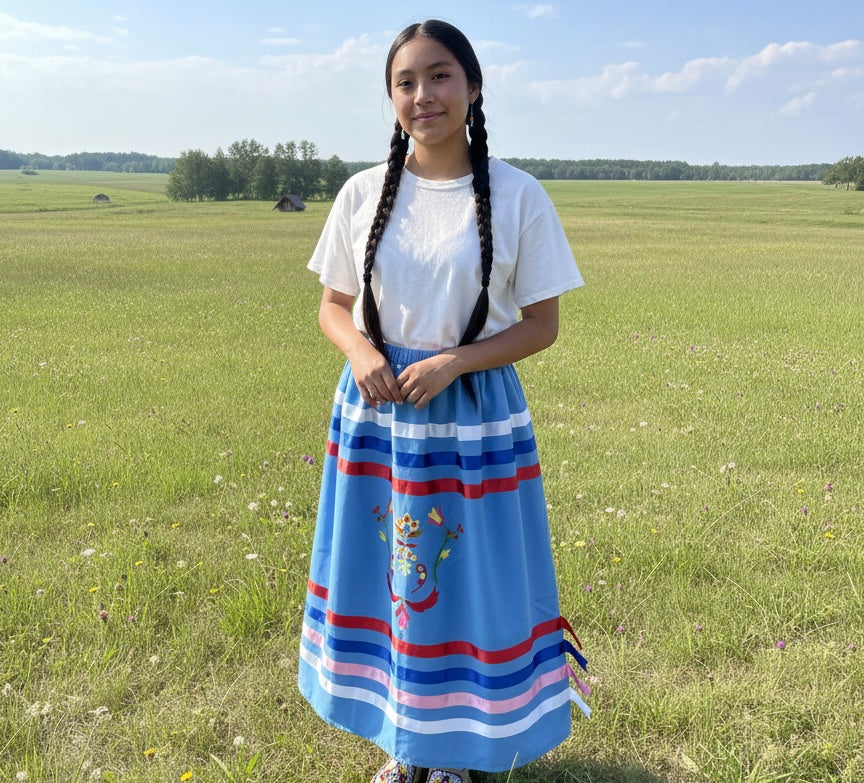 Ribbon skirts are worn by many Indigenous women, girls, and Two-Spirit people. They show pride, strength, and connection to culture. People wear them at powwows, ceremonies, and other important times, or just to feel proud every day.