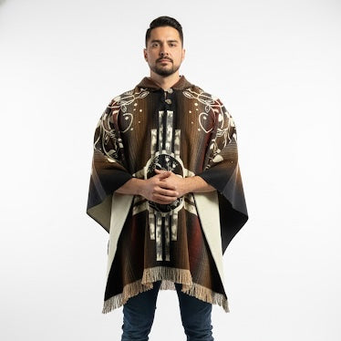 Our jackets come from Indigenous countries—Peru, Guatemala, Mexico, and Ecuador—and are 100% handmade. Our blankets are manufactured in Canada, and our beadwork is made by local artisans in Alberta.