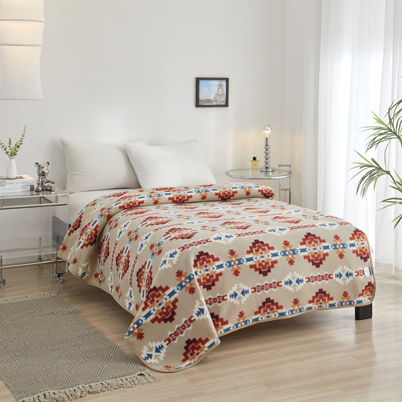 Add warmth and style to your space with this ultra-soft fleece blanket featuring a vibrant Indigenous-inspired geometric pattern. The grey background highlights rich tones of turquoise, orange, yellow, and black making it a beautiful accent for any bedroom or living room. Made from 100% premium polyester fleece, this blanket is extremely soft, lightweight, and cozy, offering the perfect balance of comfort and warmth for any season. At 60 × 80 inches, it’s large enough for beds, couches, or relaxing on the sofa.