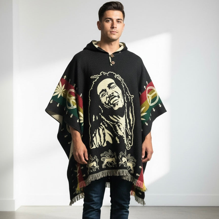 Vintage Bob Marley Hooded Poncho HandMade Wool Poncho