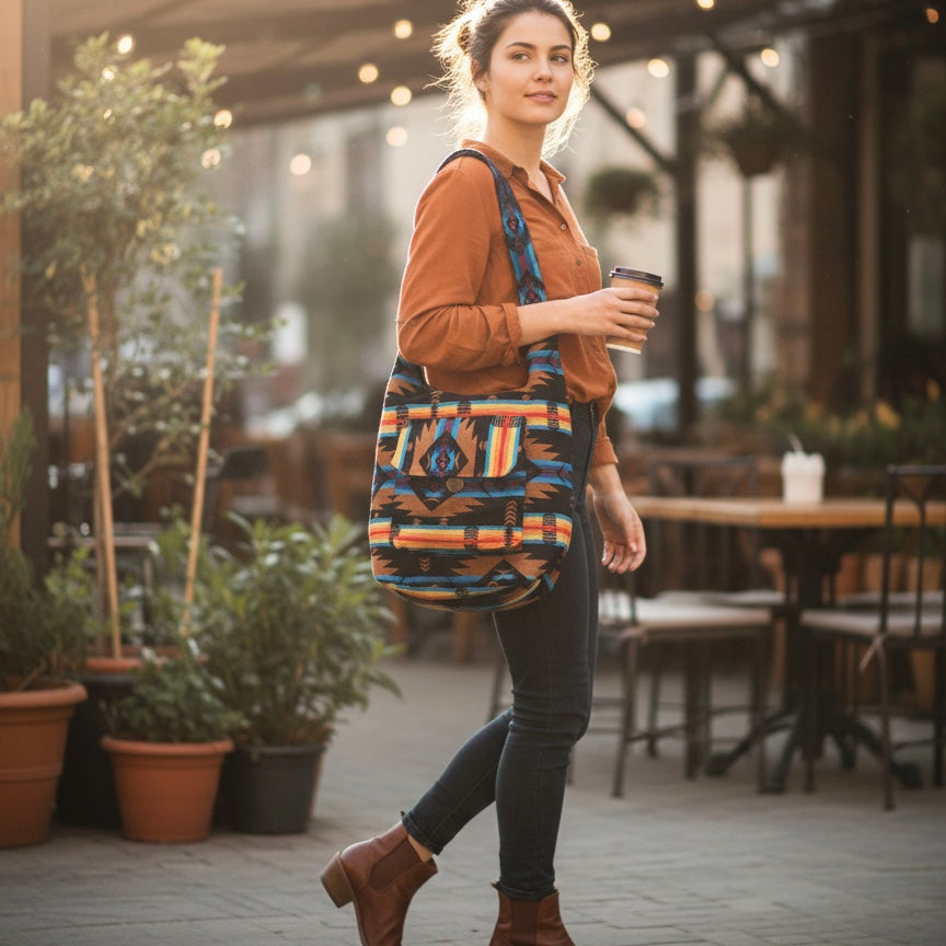 Our jackets come from Indigenous countries—Peru, Guatemala, Mexico, and Ecuador—and are 100% handmade. Our blankets are manufactured in Canada, and our beadwork is made by local artisans in Alberta.