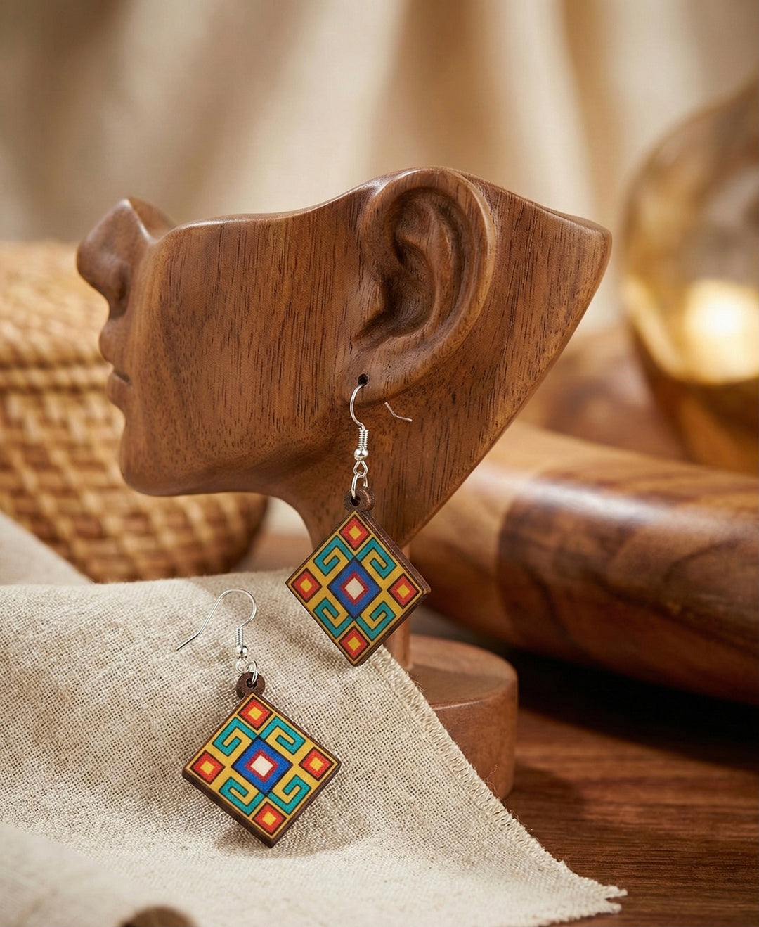 OLDTRIBES™ Painted Wood Earrings with Diamond Shape