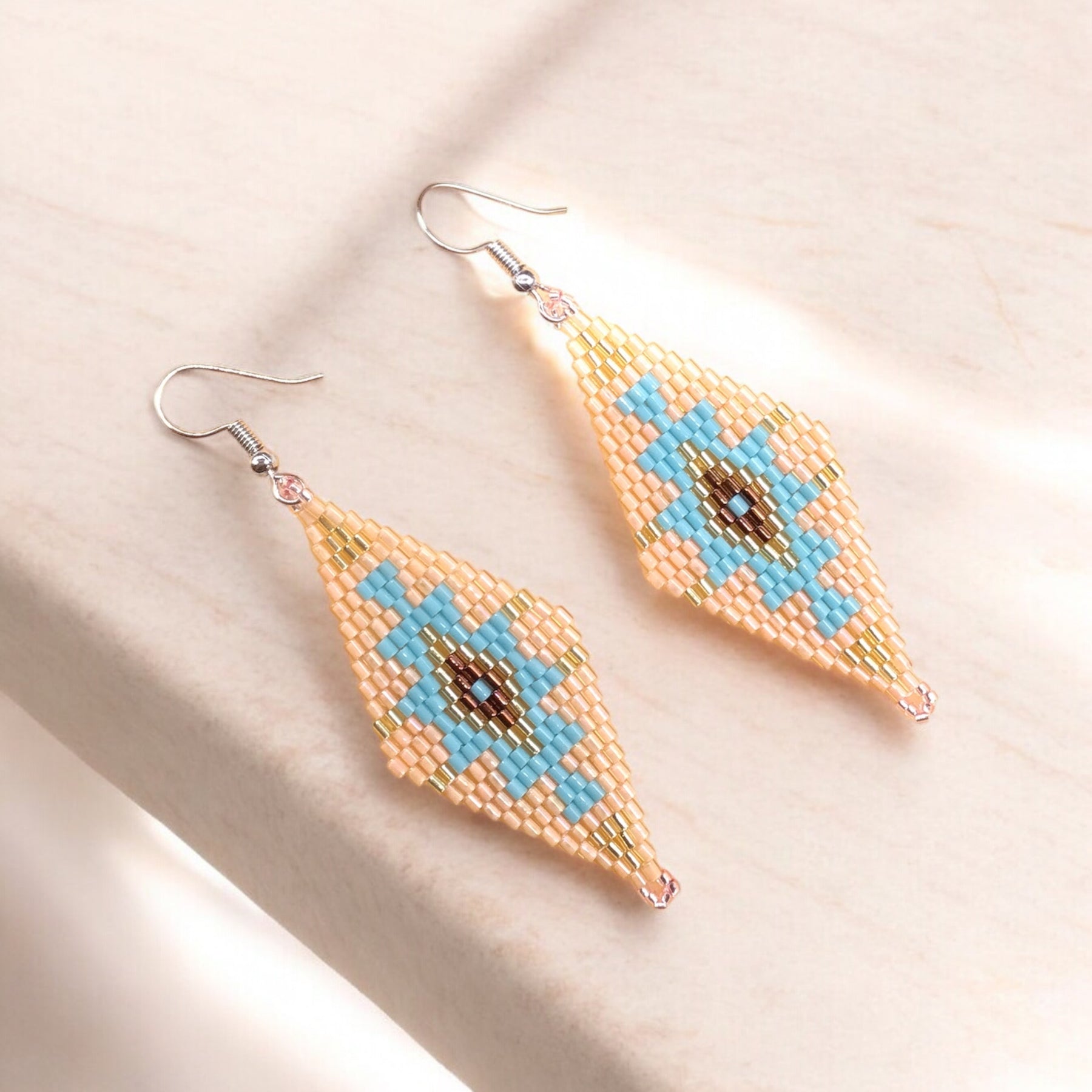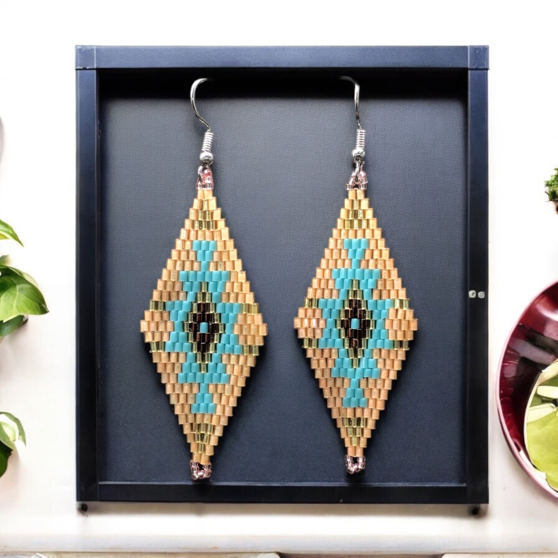 These Miyuki glass beaded earrings are crafted using world-renowned Miyuki glass beads, known for their exceptional quality, stunning brilliance, and consistent shape. Perfect for fashion designers, artists, and bead enthusiasts, these earrings are a must-have accessory for those who appreciate native beaded craftsmanship.