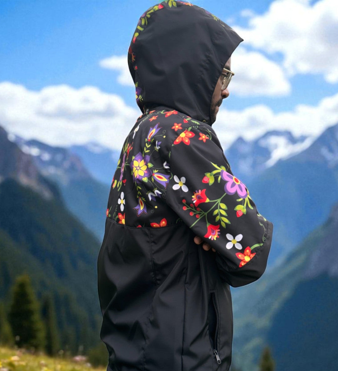 Designed for everyday movement and transitional weather, the OLDTRIBES™ Windbreaker blends Indigenous artistry with functional outerwear. Lightweight, water-resistant, and made to layer — this piece offers practical protection with bold visual impact.