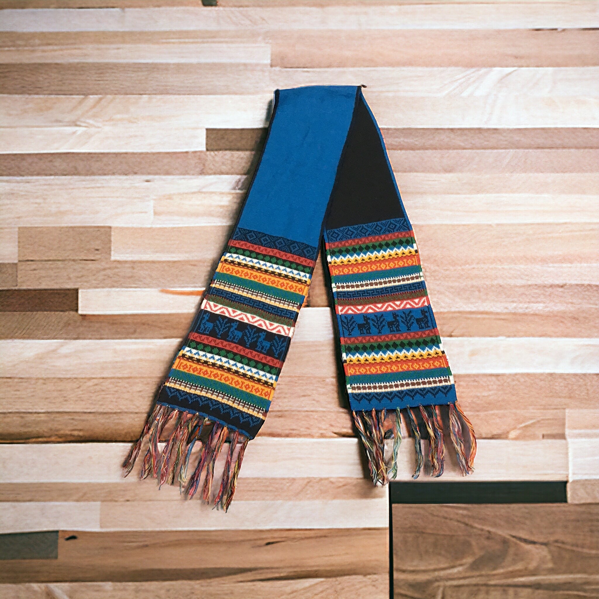 Blue and Grey Handmade Reversible Alpaca Scarf