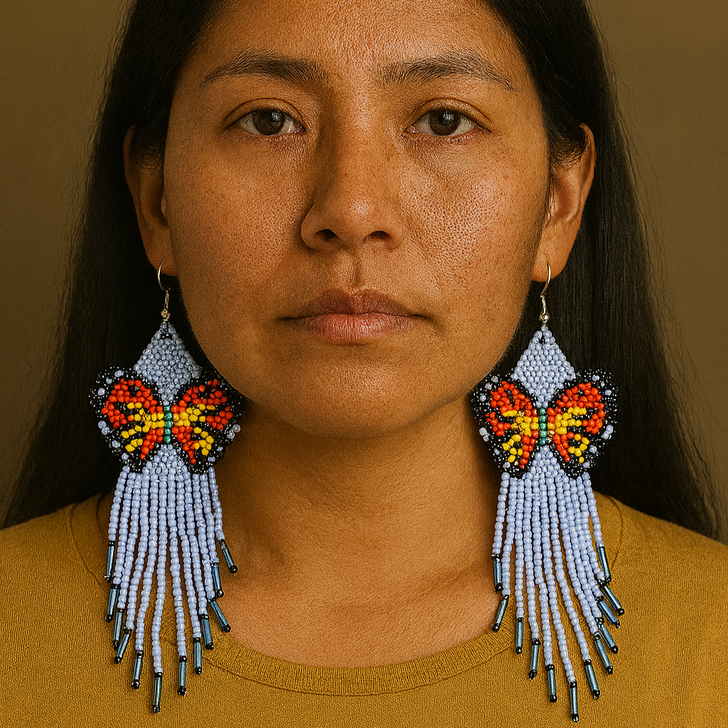 Gracefully crafted and full of vibrant life, the Beaded Dancing Wing Earrings are a stunning celebration of Indigenous artistry and natural symbolism. Inspired by the delicate flutter of butterfly wings and the fiery hues of transformation, these earrings bring movement, color, and spirit to any look.